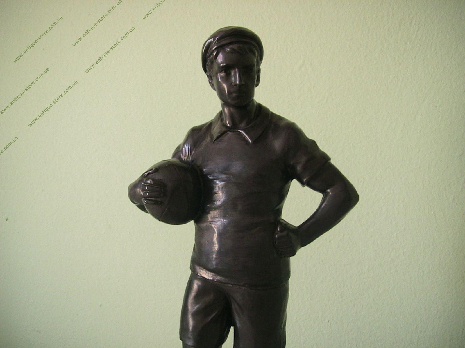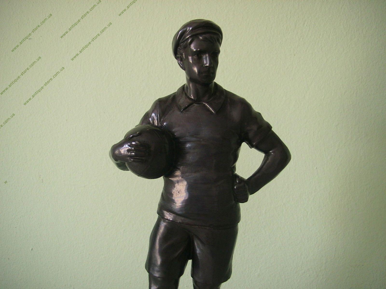 Фигура футболиста, вратаря (металл) на мраморном цоколе фигура со следами времени. Отличный подарок.
