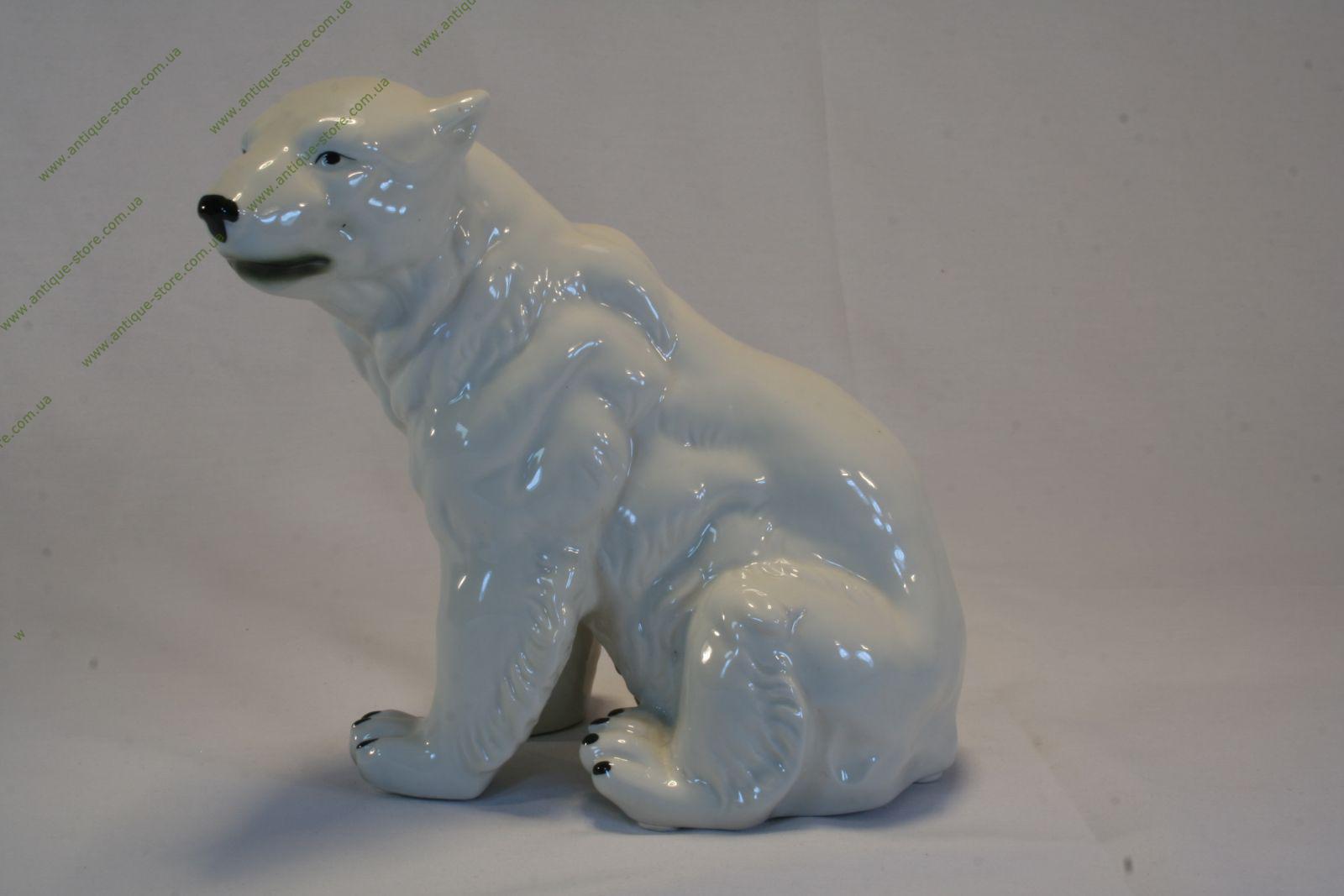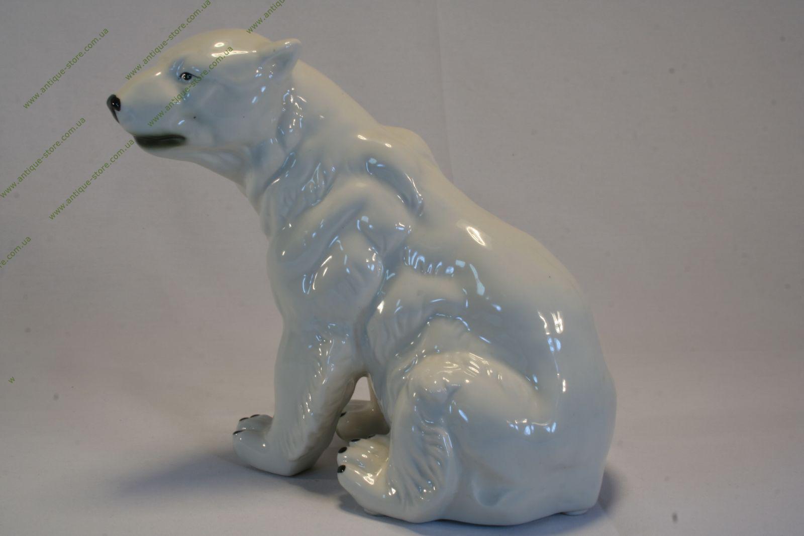 Фарфоровая фигура сидящего белого медведя, фигура производства немецкой мануфактуры.