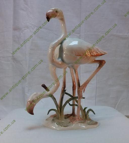 Редчайшая фарфоровая фигура двух розовых фламинго, работа знаменитого художника Карла Ахцигера (К. Achtziger) Фигура высокого качества старинной немецкой фарфоровой мануфактуры Хутченройтер (Hutschenreuther), Германия ,