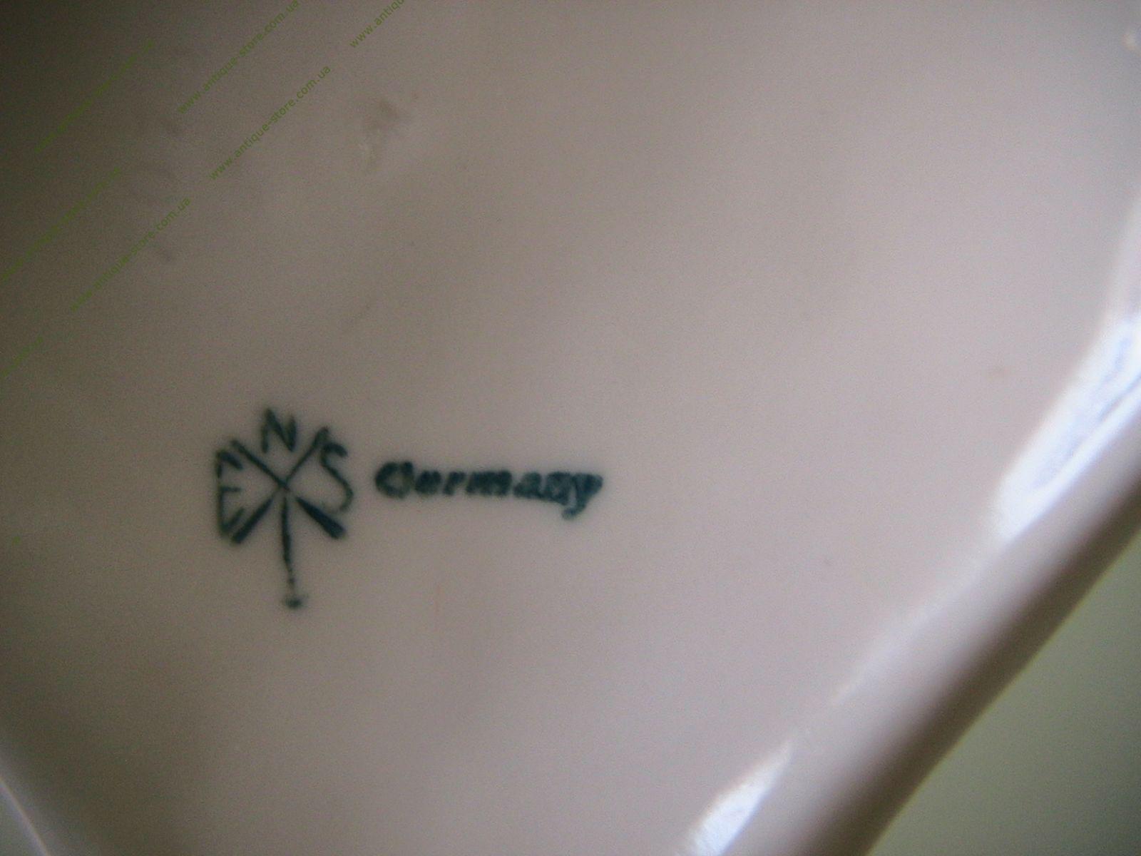 Старинный подсвечник из глазурованного фарфора известной немецкой мануфактуры Karl Ens (Thüringen). На обратной стороне подсвечника маркировка: зеленое подглазурное клеймо ENZ, надпись Germany. Подсвечник украшен нежным букетом из роз.