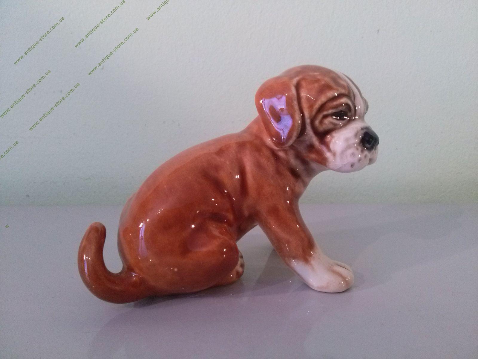 Фарфоровая фигурка сидящего щенка таксы. Фигурка выполненна очень натуралистично. Чудесное украшение интерьера.