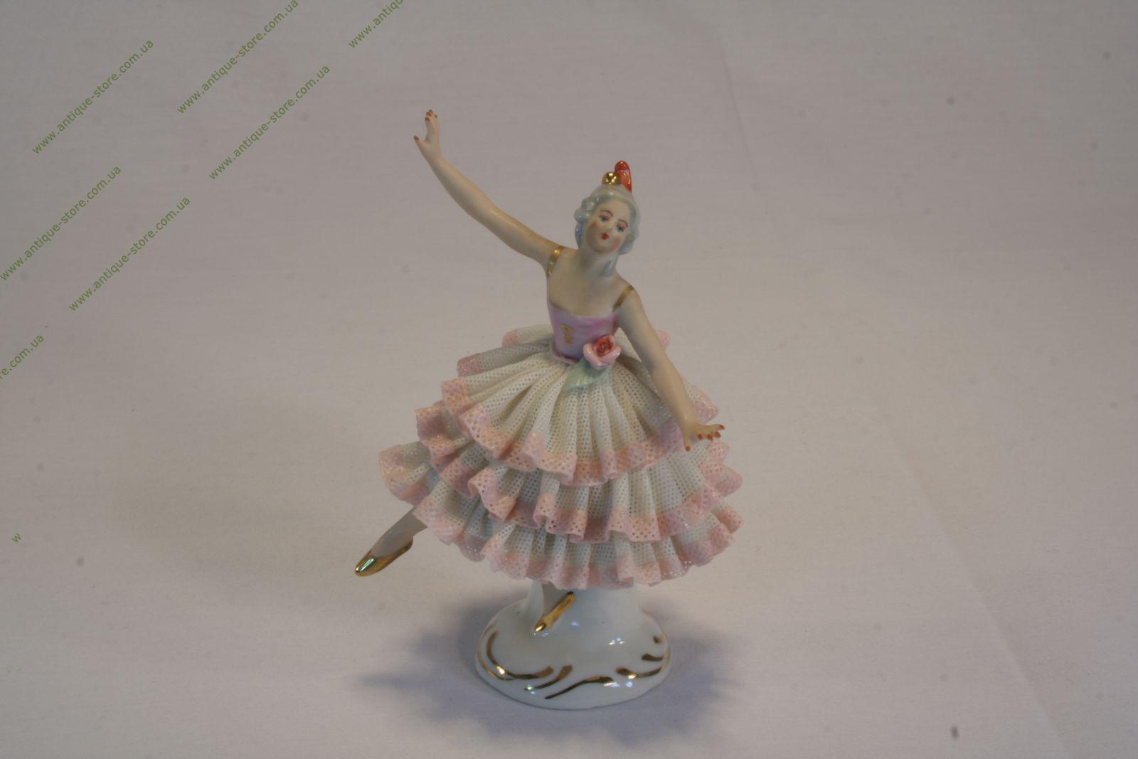 Коллекционная фарфоровая статуэтка «Балерина в бело-розовом платье», изготовлена из знаменитого кружевного дрезденского фарфора.