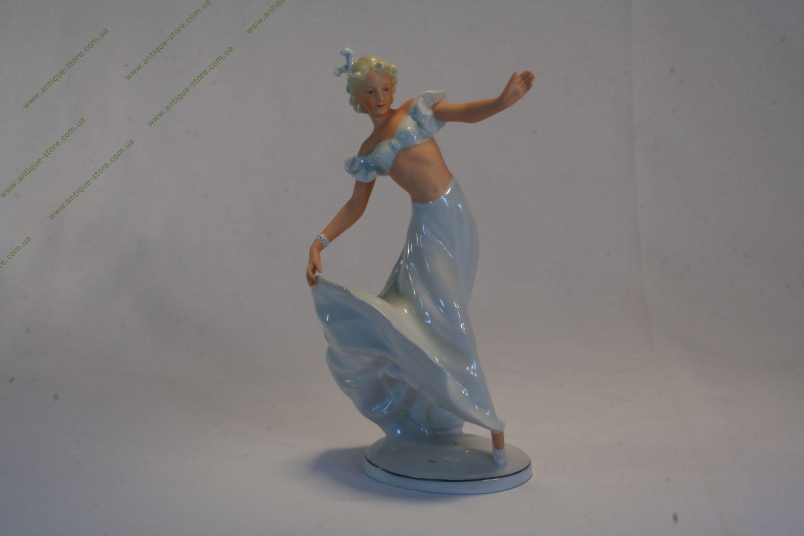 Фигурка танцовщицы, в длинном платье, немецкой фарфоровой мануфактуры Шаубах Кунст (Schaubach Kunst), художник К. Штайнер (K. Steiner).