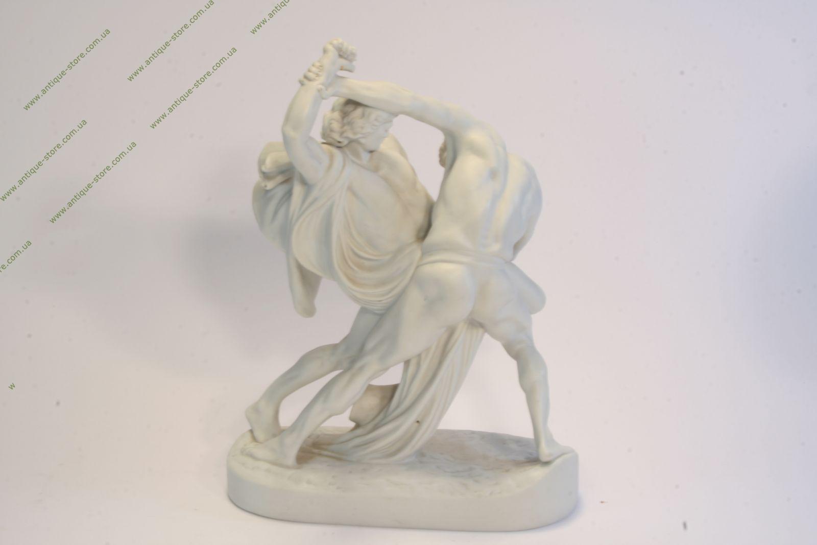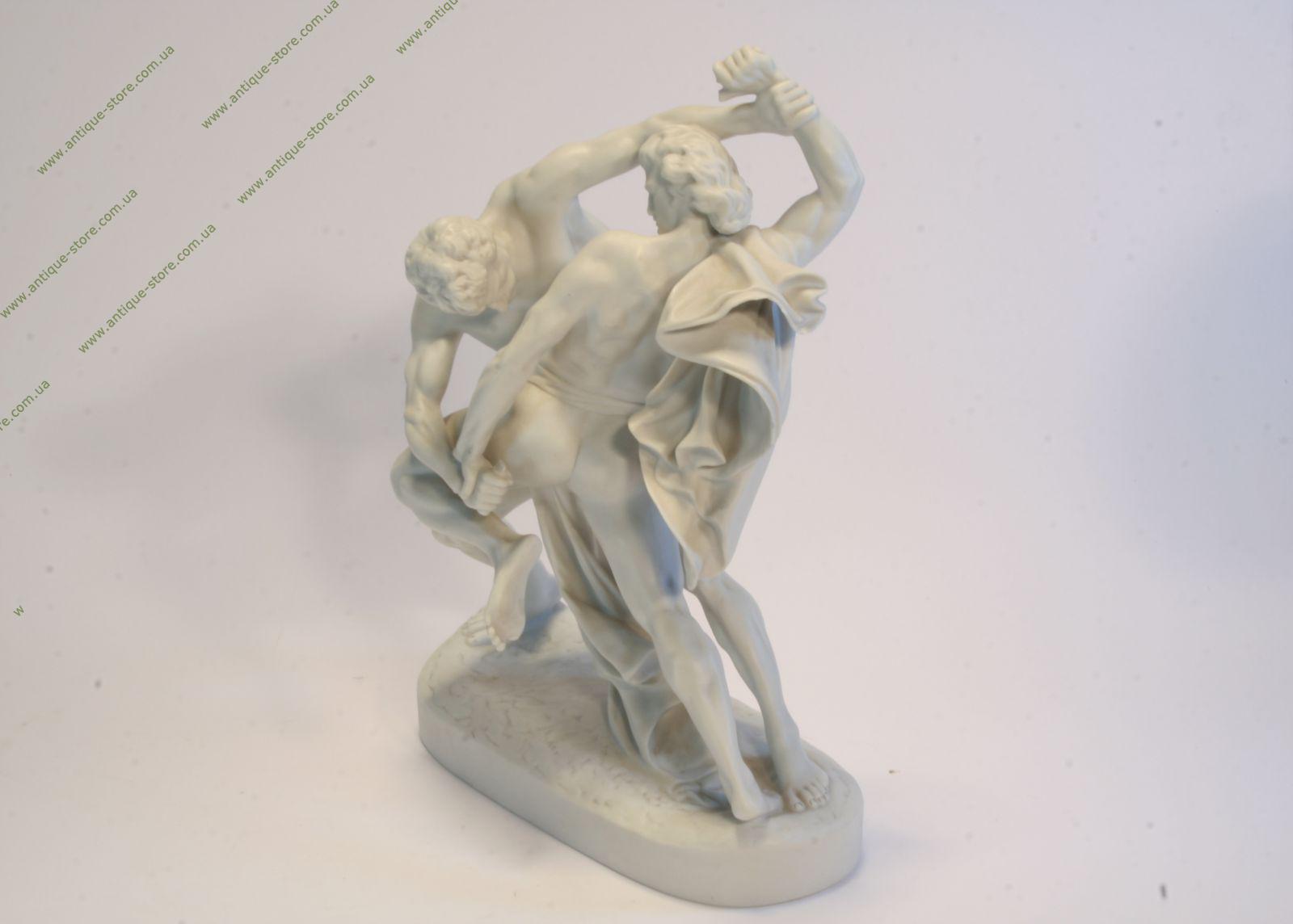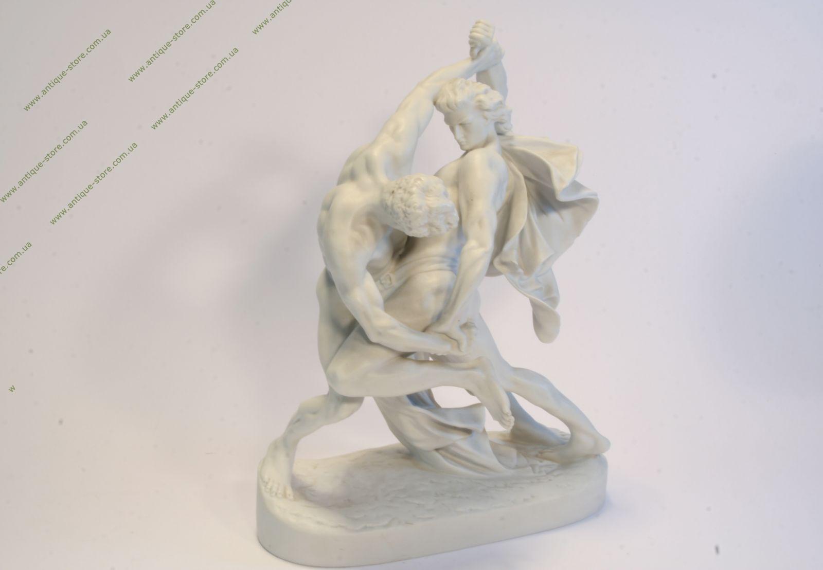 Фарфоровая статуэтка (бисквитный фарфор) двух скандинавских борцов по модели датского скульптора Й.-П. Молина, клеймо в тесте и номер 3281, фигурка производства тюрингской мануфактуры, Германия, Scheibe-Alsbach, Тюрингия.