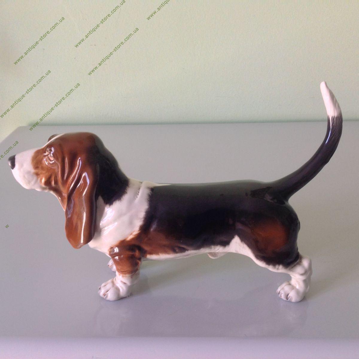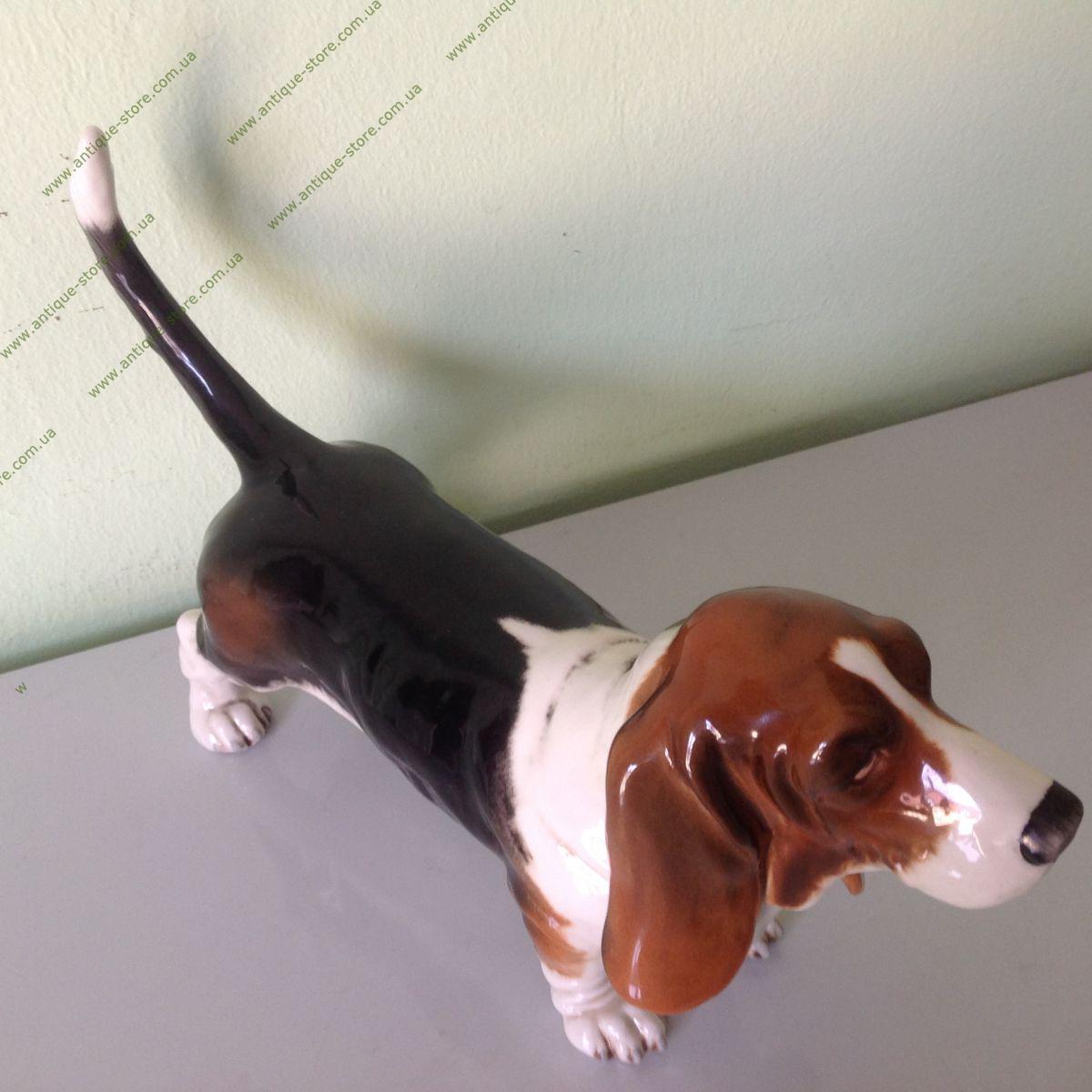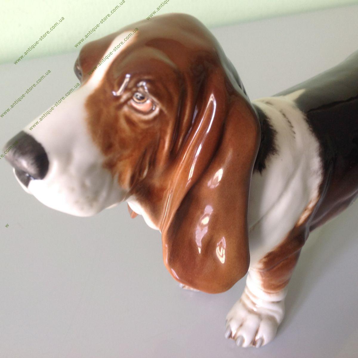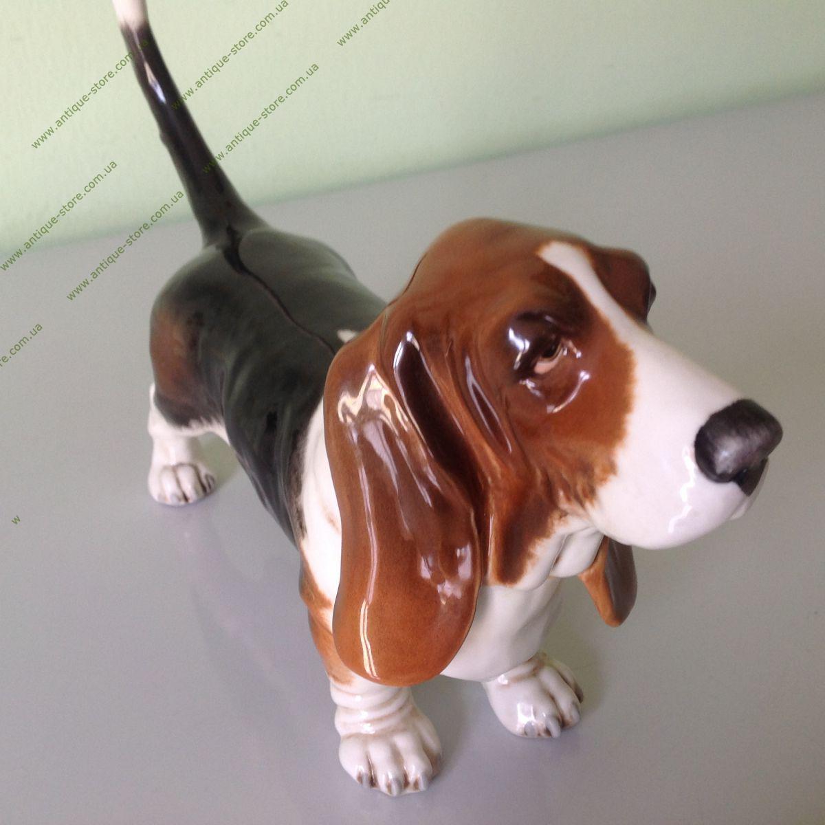 Фарфоровая фигурка собаки породы бассет. Фигурка выполненна очень натуралистично. фигурка производства знаменитой немецкой мануфактуры "Гебель" (W.Goebel), основанной в 1871 г.