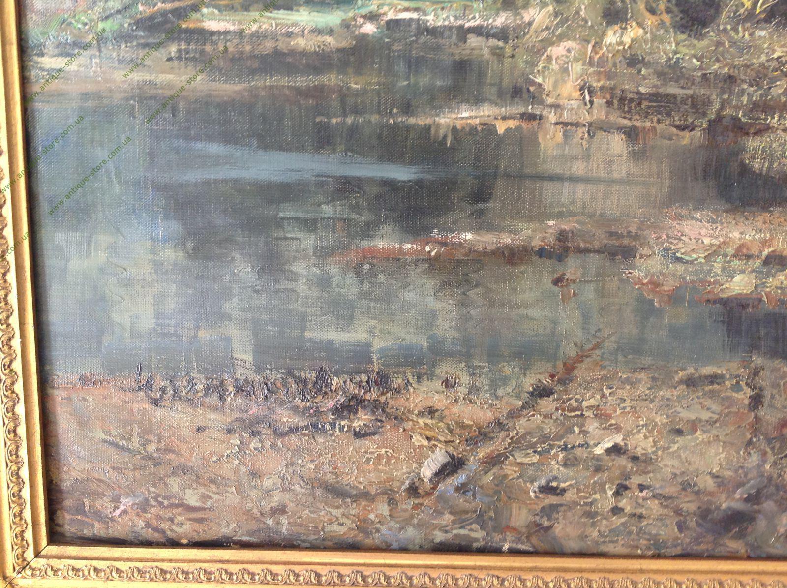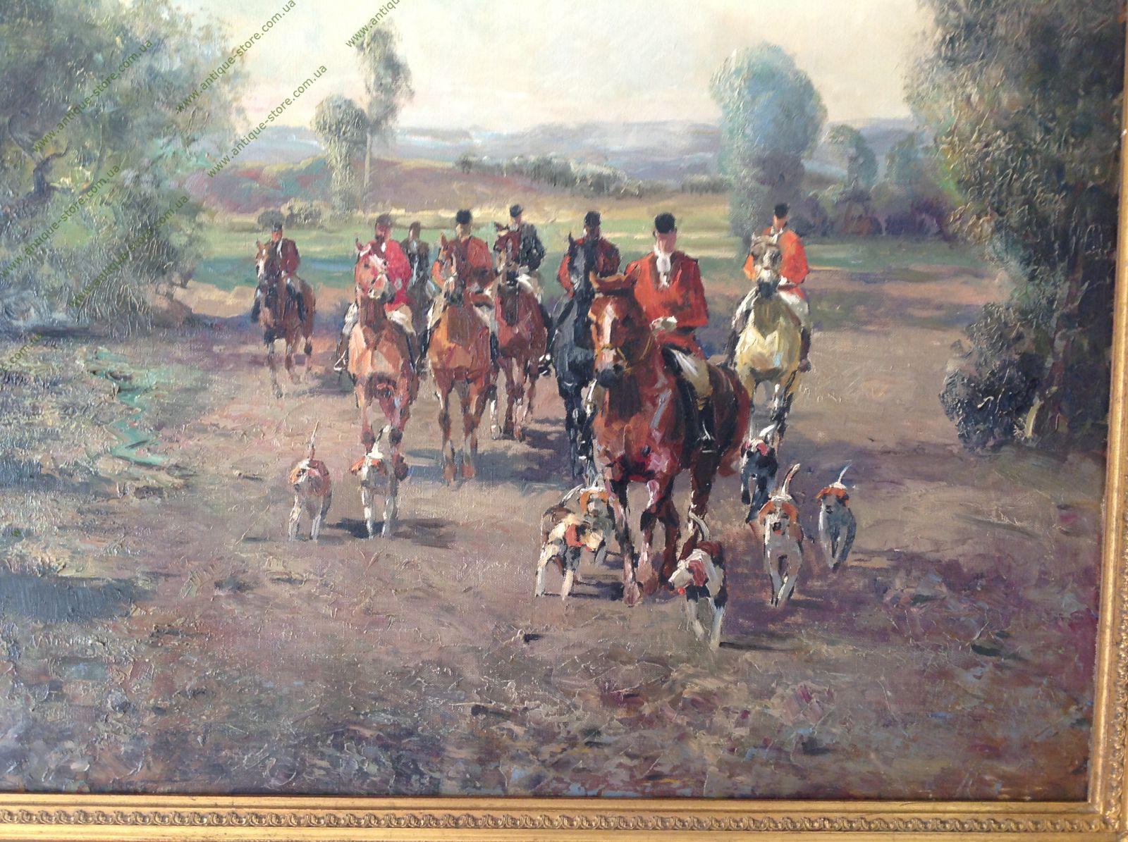 Картина, изображающая королевскую охоту, написанная в стиле импрессионизм, принадлежащая кисти знаменитого немецкого художника Людвига Гшоссмана (1894 - 1988), полотна которого успешно продаются на аукционах мира, в частности на аукционах «Со́тбис» ( Sotheby's) и «Кри́стис» (Christie’s).