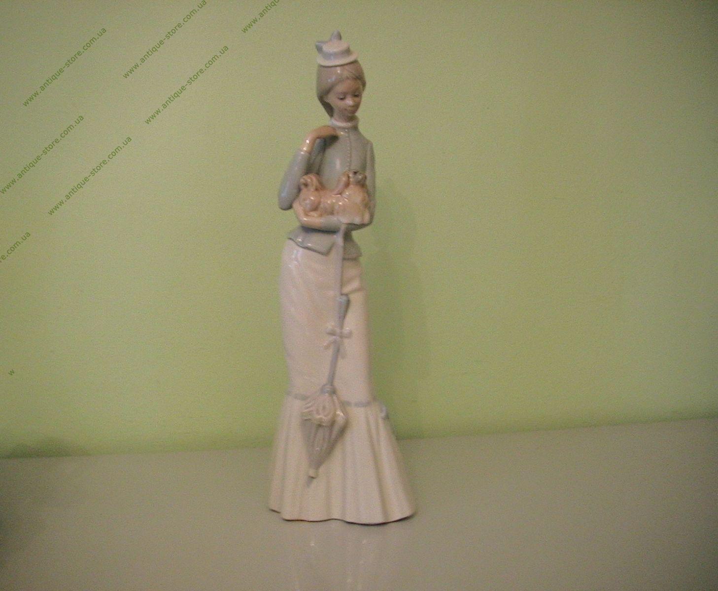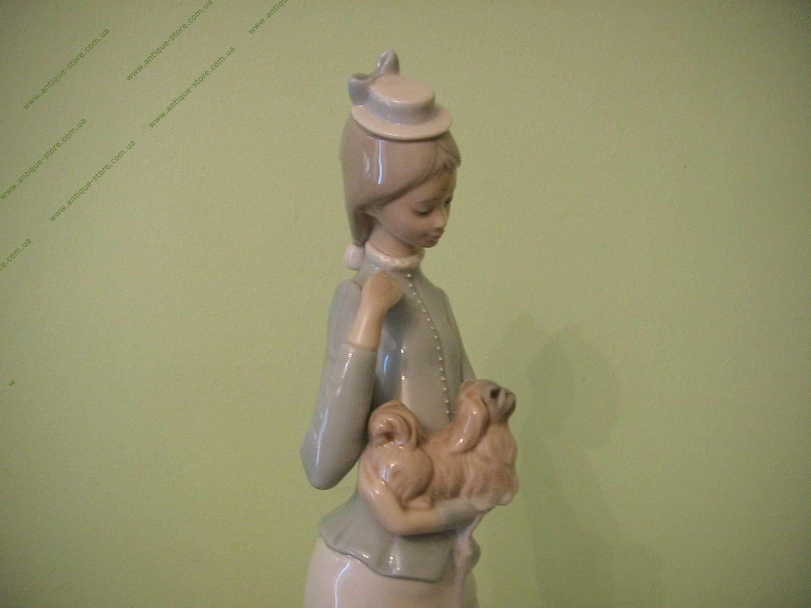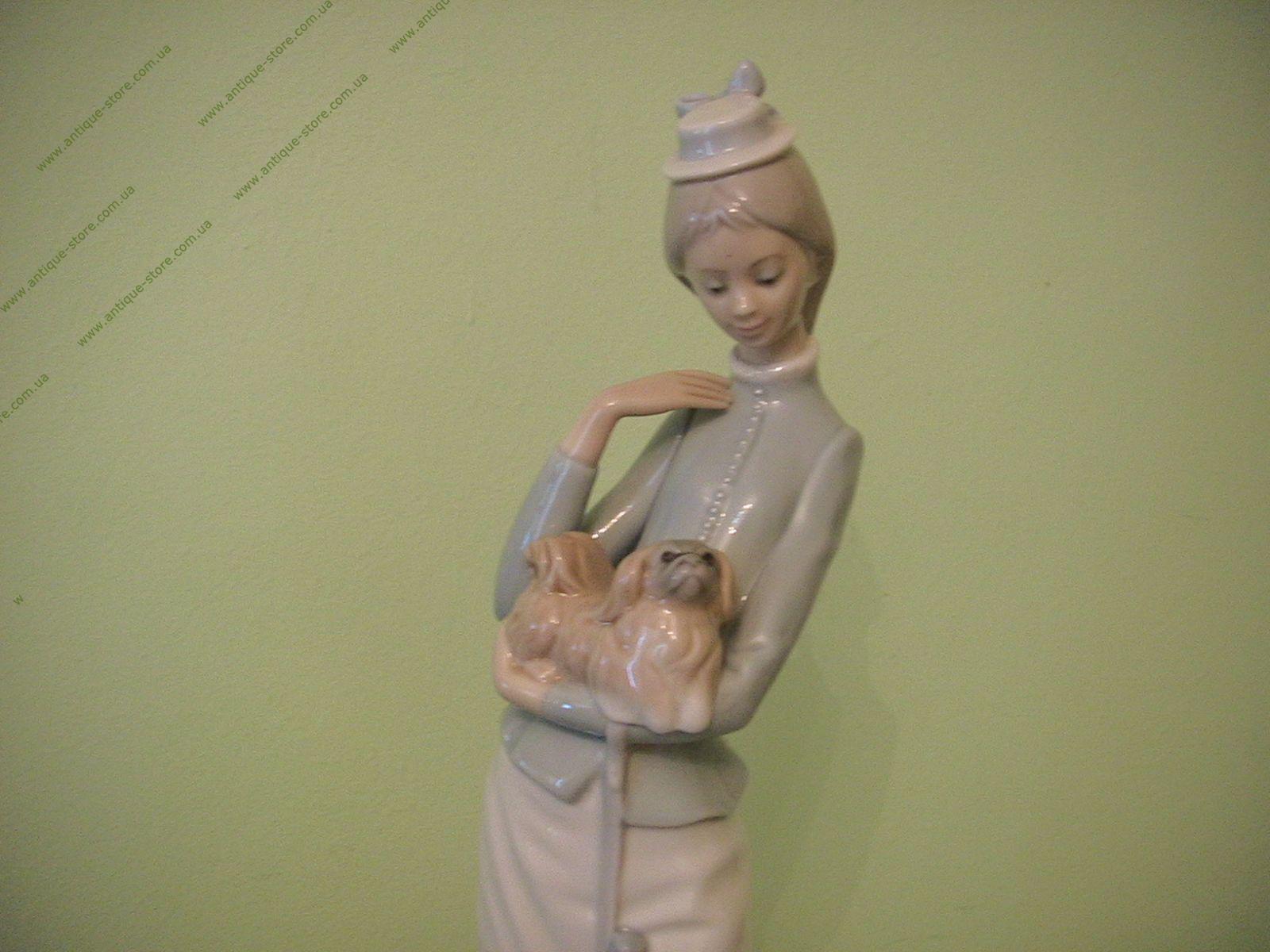 Редкая фарфоровая фигура девушки, гуляющей со своей собачкой, всемирно известной фарфоровой мануфактуры Ладро (Lladro), авторская работа художника Хозе Роиг (Jose Roig ), работа есть в каталоге под названием "Гуляя с собачкой", отличный подарок.