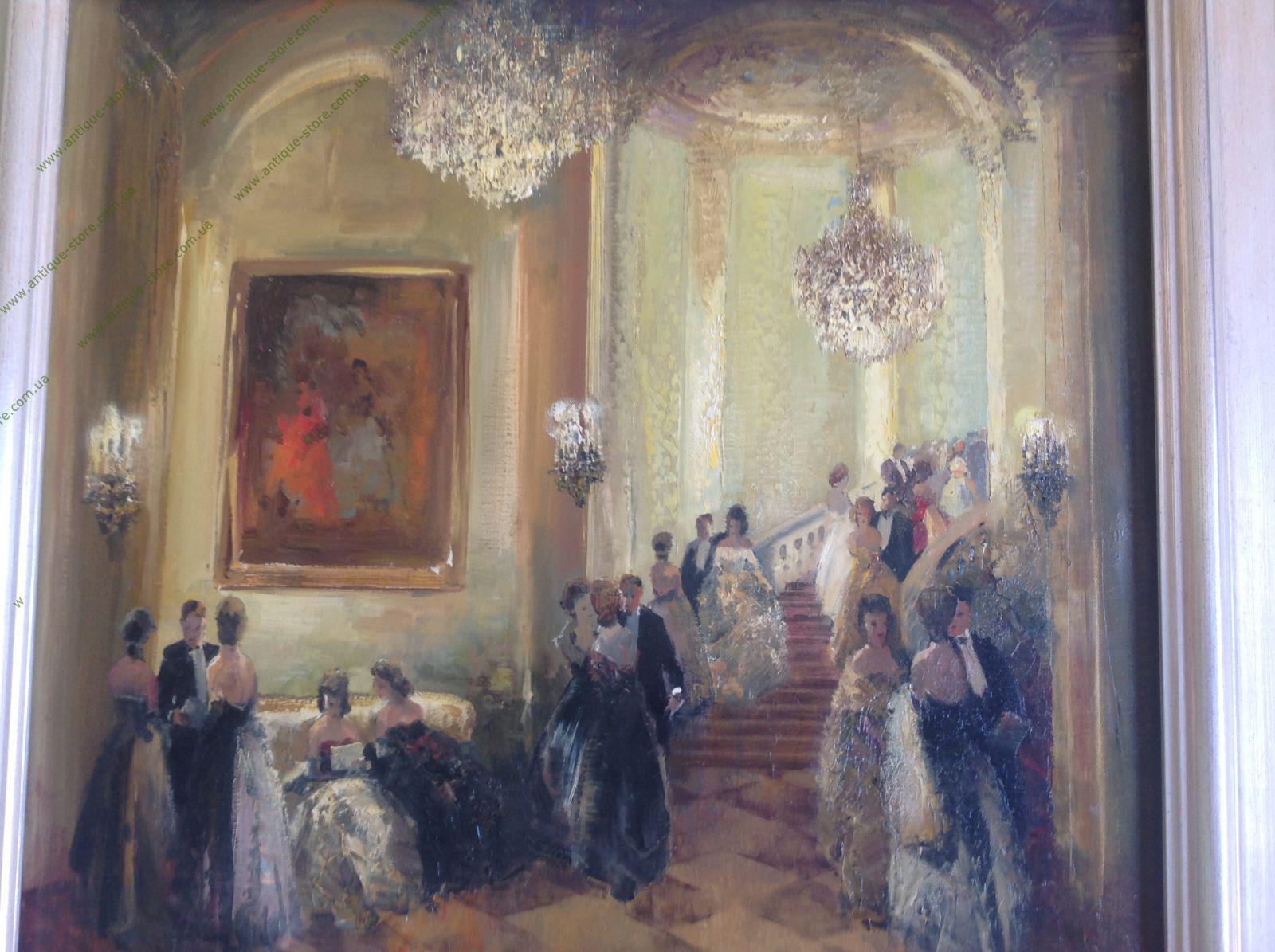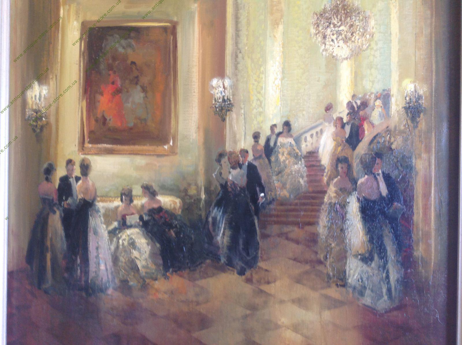 Картина, изображающая сцену бала, написанная в стиле импрессионизм, принадлежащая кисти знаменитого немецкого художника Людвига Гшоссмана (Ludwig Gschossmann), (1894 - 1988), полотна которого успешно продаются на аукционах мира, в частности на аукционах «Со́тбис» ( Sotheby's) и «Кри́стис» (Christie’s). Картина носит название "Бал" из серии "Нескучные вечера".