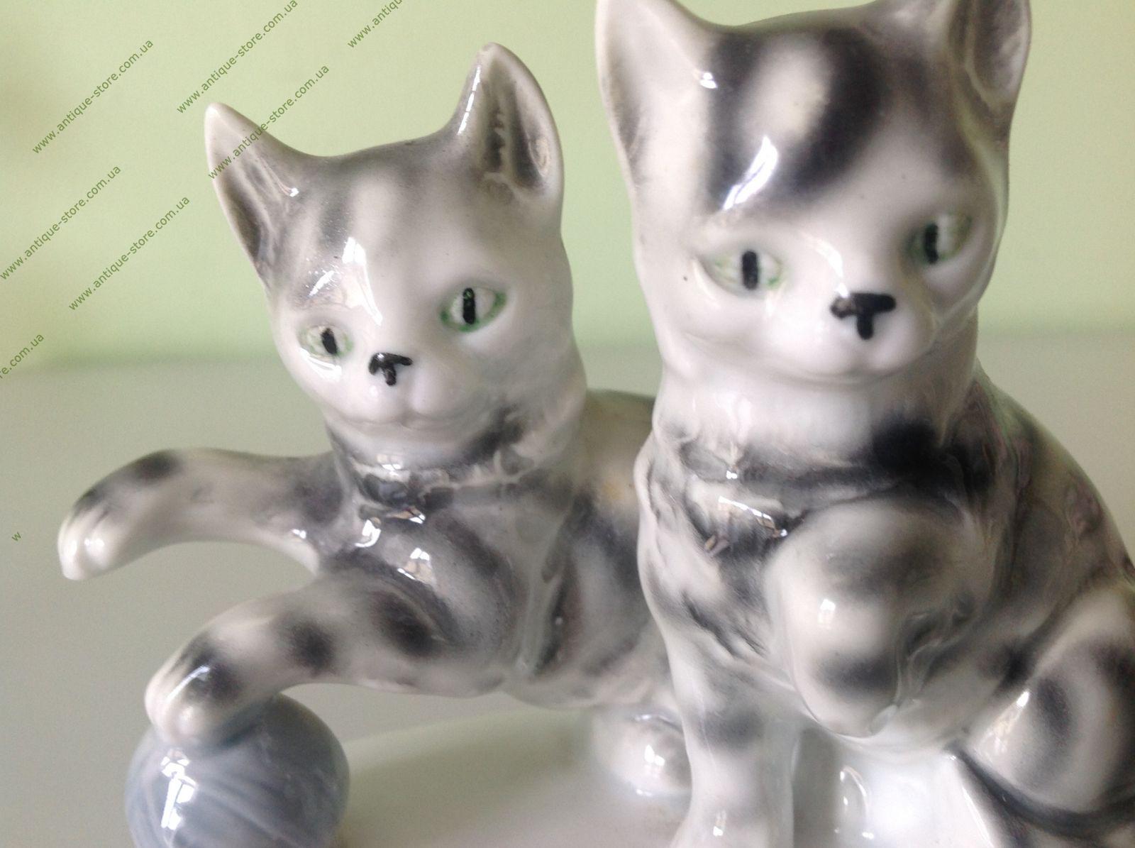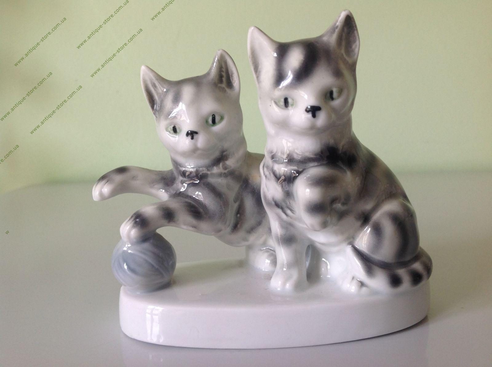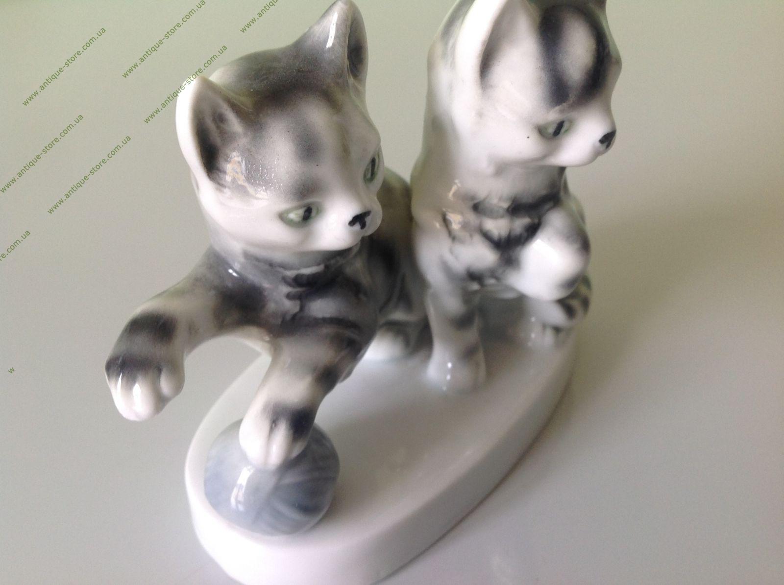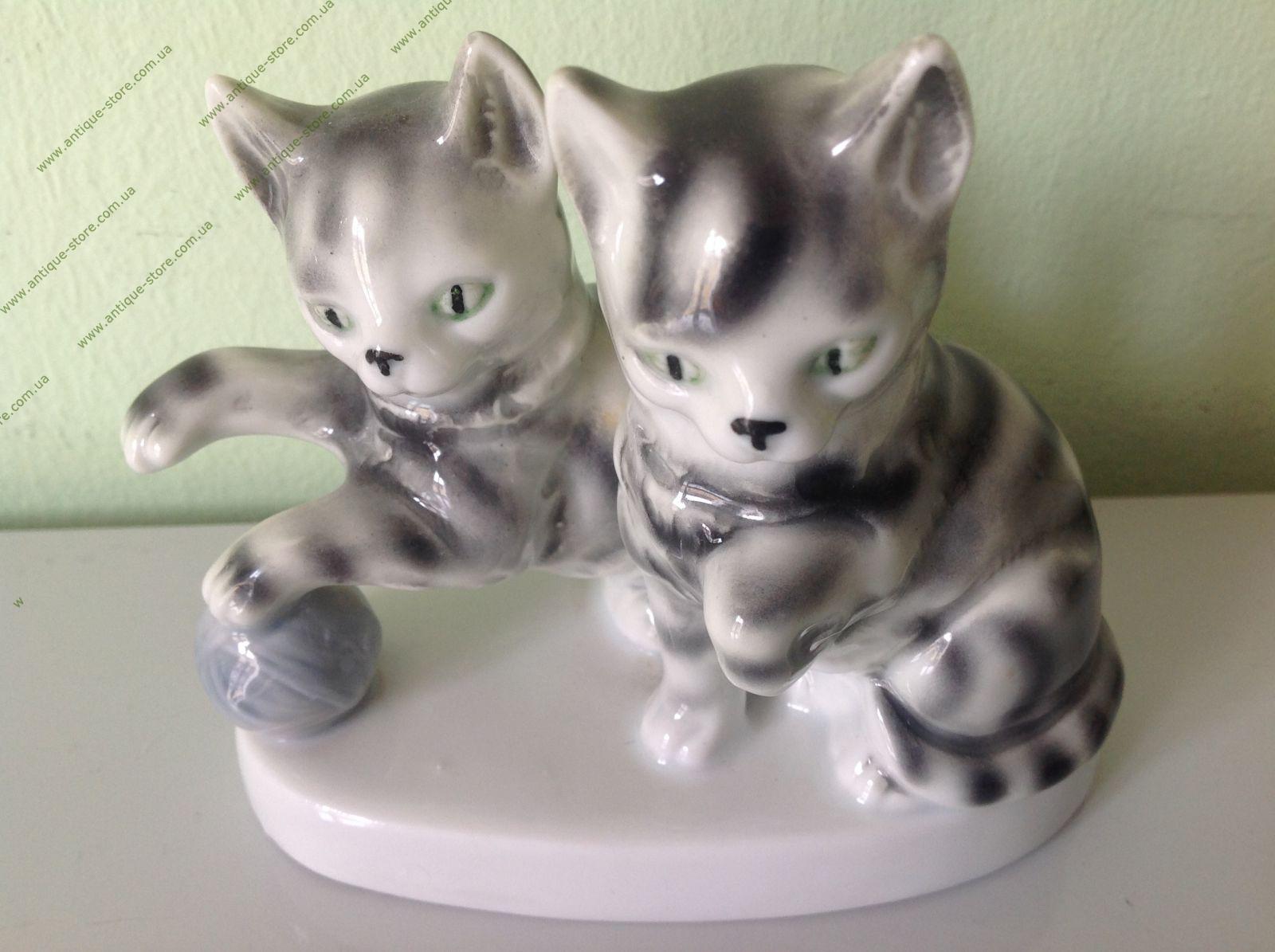 Фарфоровая статуэтка полосатых котят, играющих с мячом - фигурка производства Германии, фарфоровая мануфактура "Графенталь"(Grafenthal Porzellan), подглазурное клеймо.