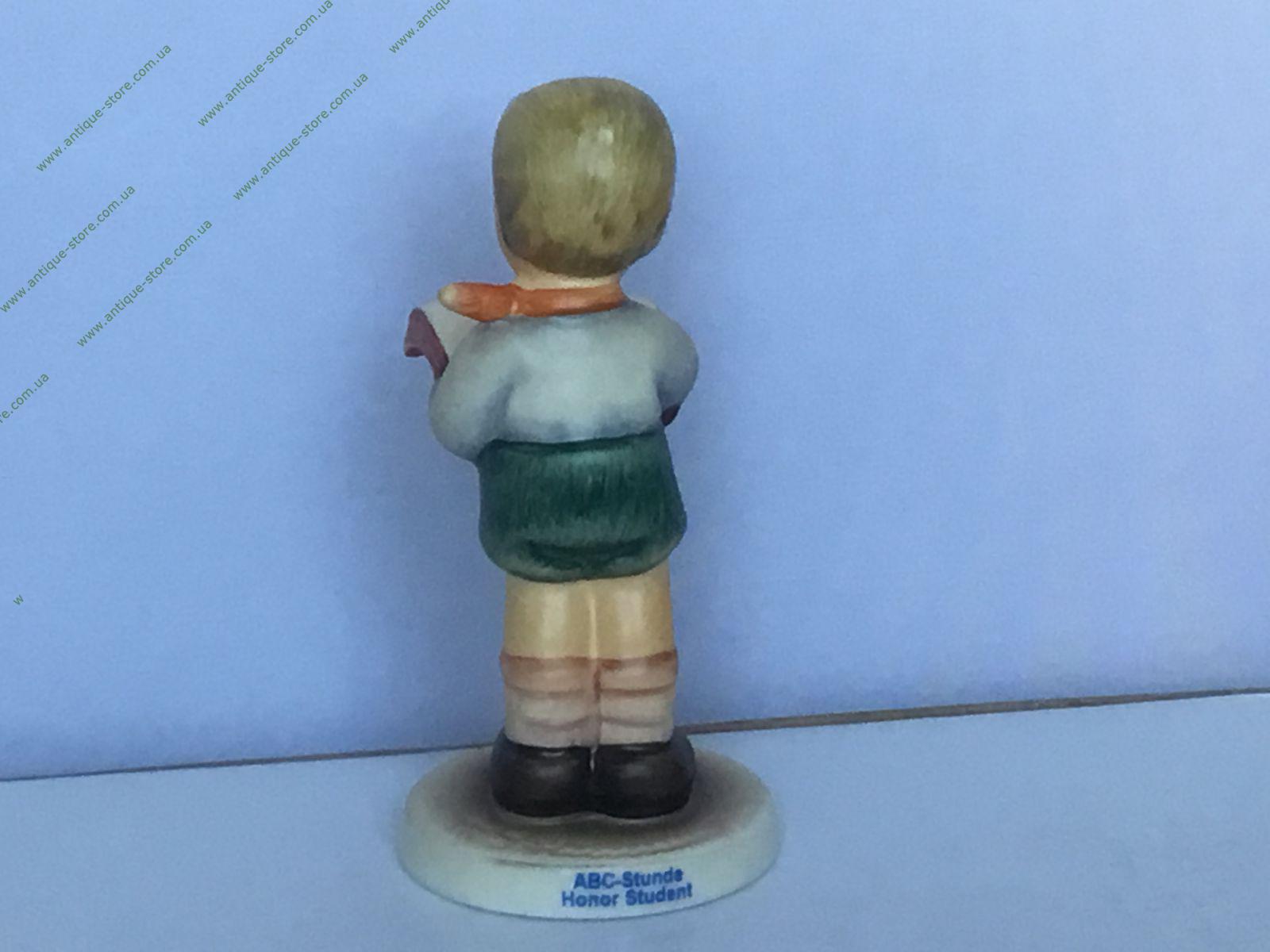 Фигурка очаровательного мальчика-Хуммель (M. I. Hummel) носит название «ABC-Stunde - Honor Student» (ABC-час. Почетный студент), № 2087 (12) - 1999, подп.. – синий штамп марка, надпись: M. I. HUMMEL CLUB-, входит в широкий ассортимент Hummel Manufaktur Rödental.
