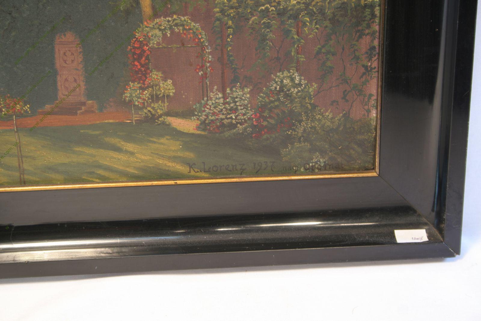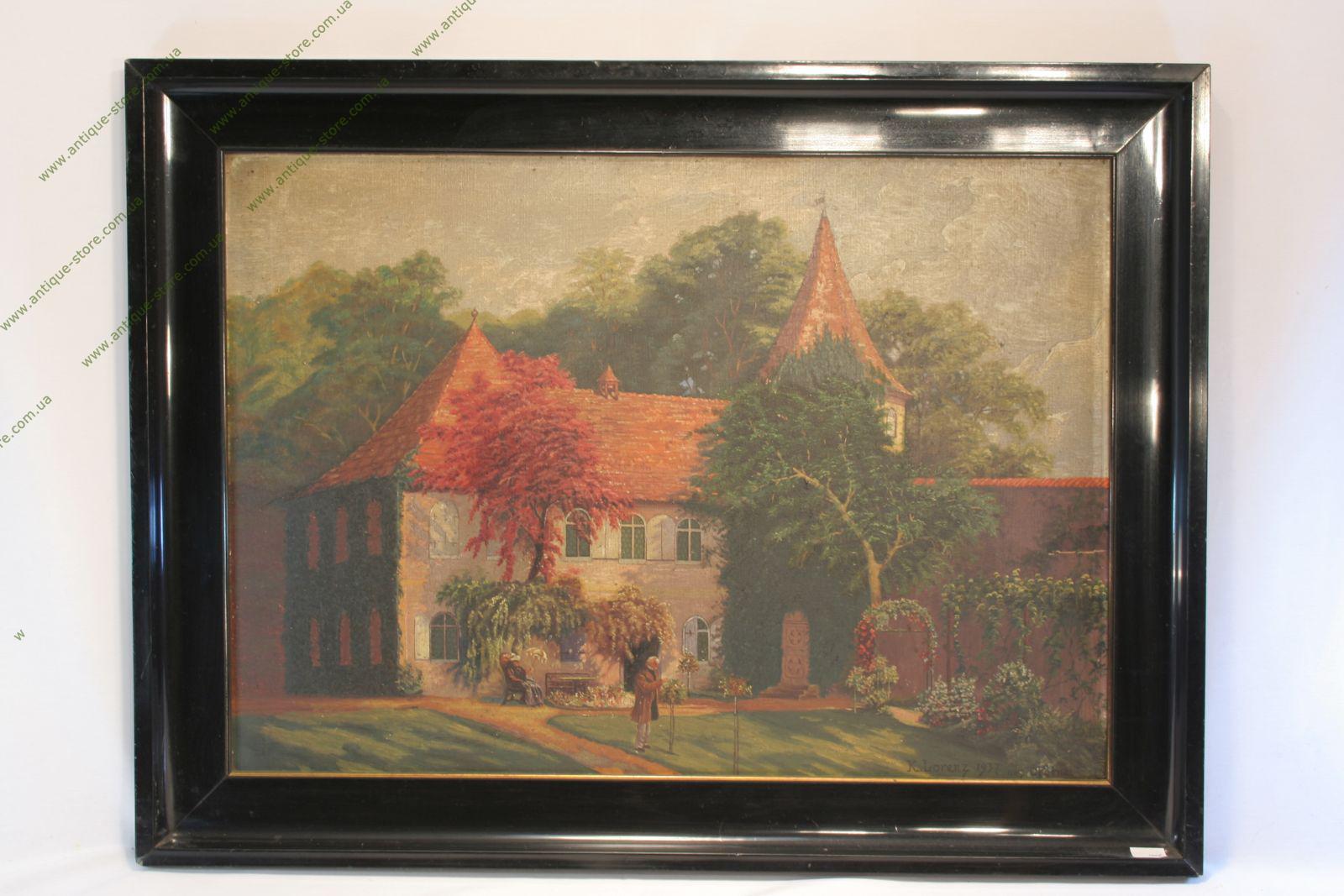 Жанровый пейзаж, известного художника третьего Рейха К.Лоренца, изображающий дворянское поместье с людьми.