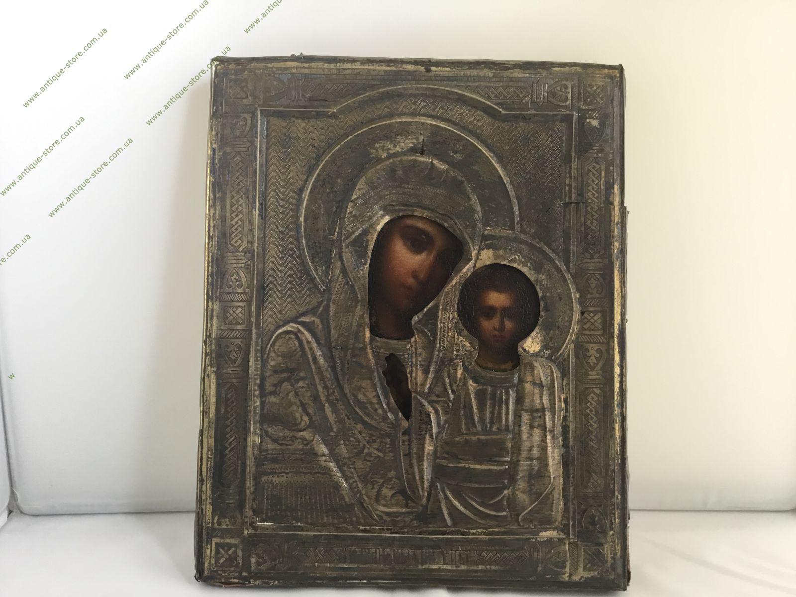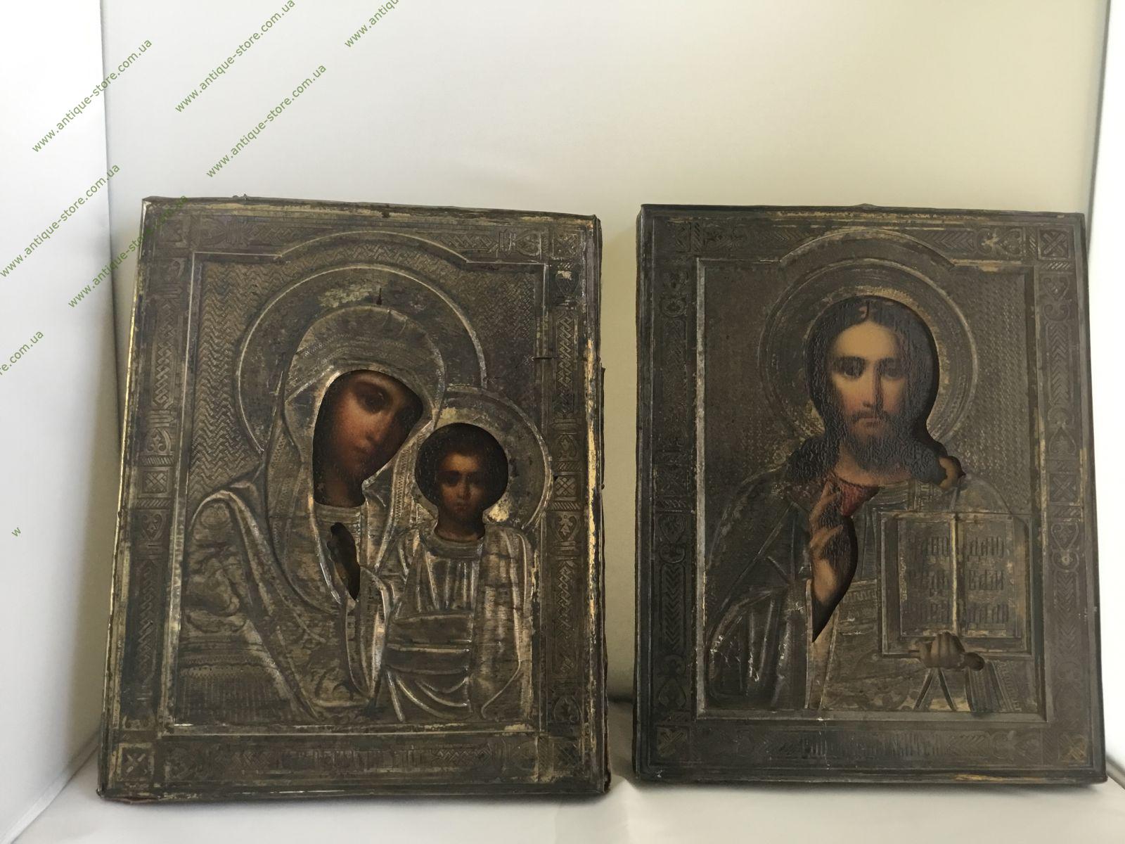Иконы «Венчальная пара». Богоматерь Казанская и Господь Вседержитель , дерево, масло, оклад серебро 84°, клеймо СГ, предположительно Московское пробирное управление 1899 — 1908, Семен Галкин. Все родное Без вмешательства и реставрации.