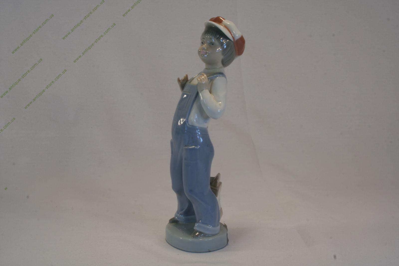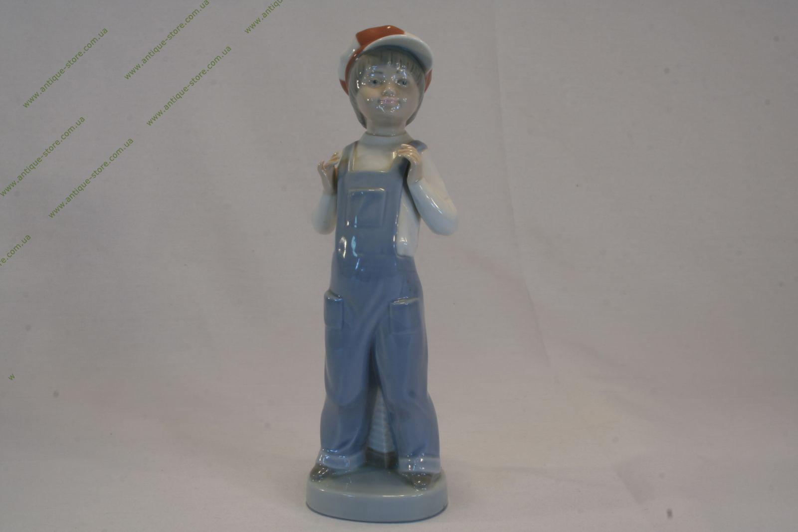 Фарфоровая фигура стоящего мальчика в клетчатой кепке, известной фарфоровой мануфактуры Ладро (Lladro), автор Фрациско Катала (Francisco Catalа), отличный подарок.