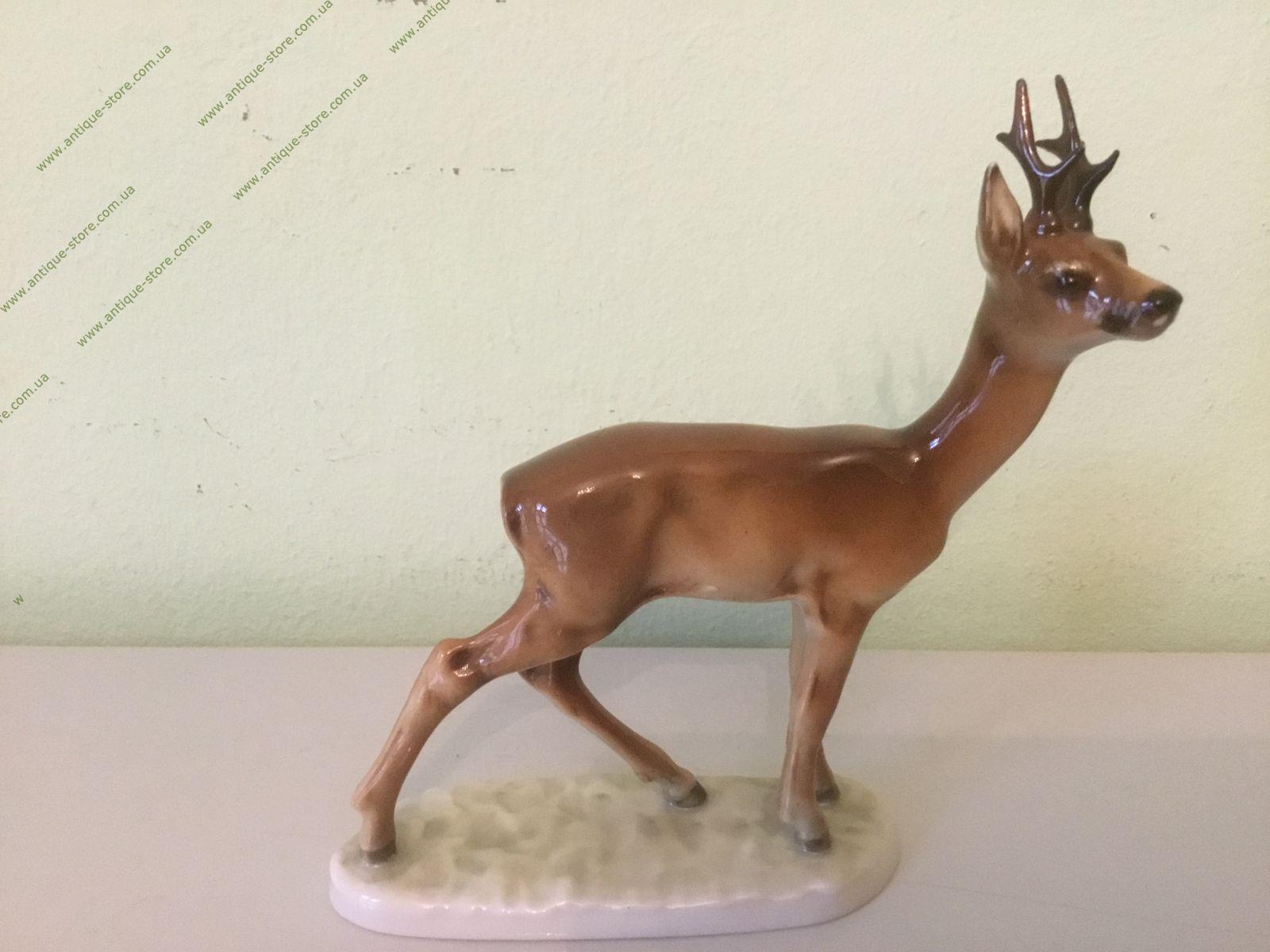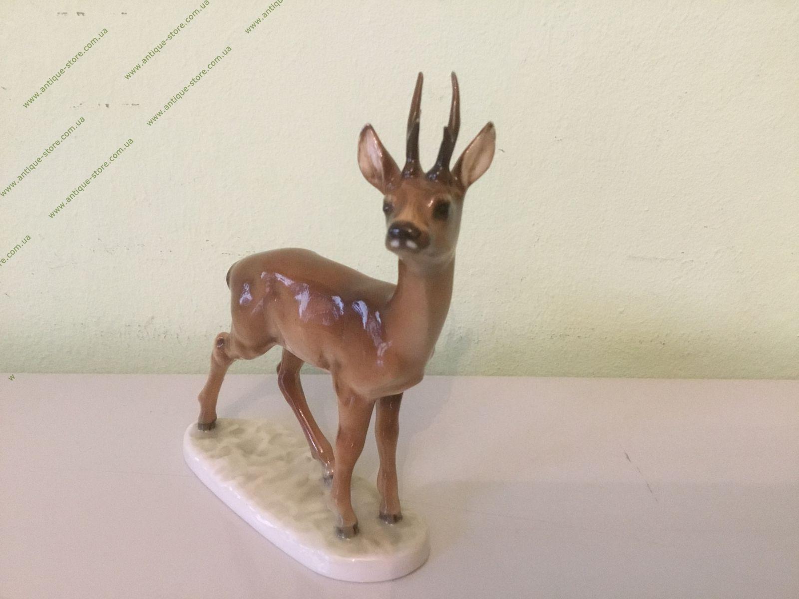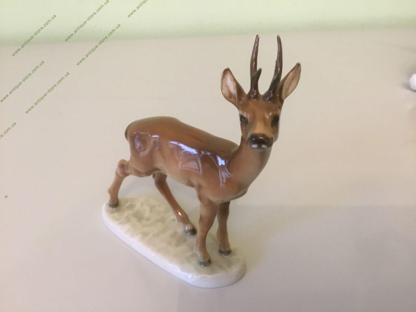 Фарфоровая фигурка, стоящего оленёнка, с подглазурным клеймом мануфактуры Хутченройтер (Hutschenreuther) на обратной стороне.