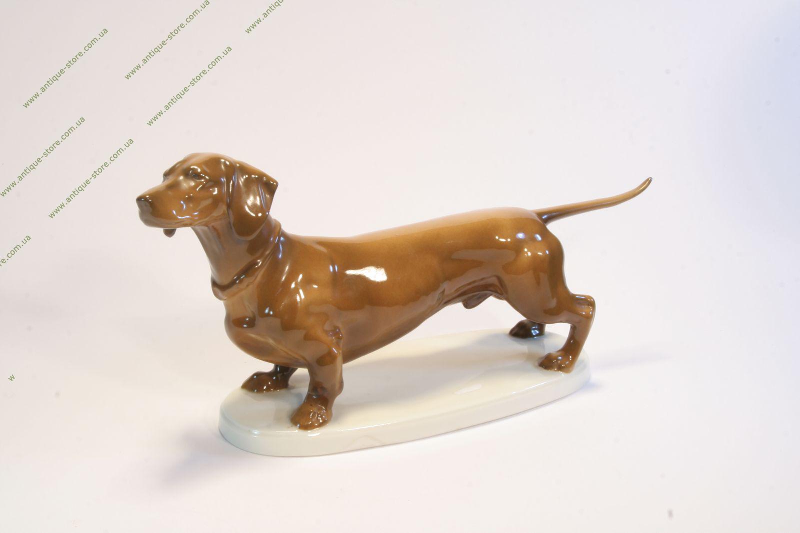 Великолепный розенталевский фарфор Розенталь (Rosenthal). Очень редкая статуэтка рыжей таксы. Фигура выполнена очень натуралистично. Произведена на мануфактуре во время Первой Мировой войны. Настоящая находка для коллекционера и чудесное украшение интерьера. Фриц Диллер (Fritz Diller ), 1915