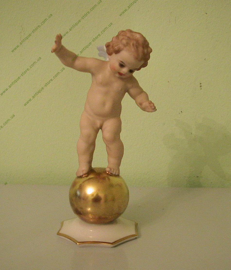Путти на золотом шаре, фарфоровая фигура изготовлена из бисквитного фарфора. Работа знаменитого художника Карла Туттера (Karl Tutter). Изделие крупнейшего немецкого концерна Hutschenreuther (Хутченройтер), основанного в 1814 году в Баварии художником Карлом Магнусом Хутченройтером.