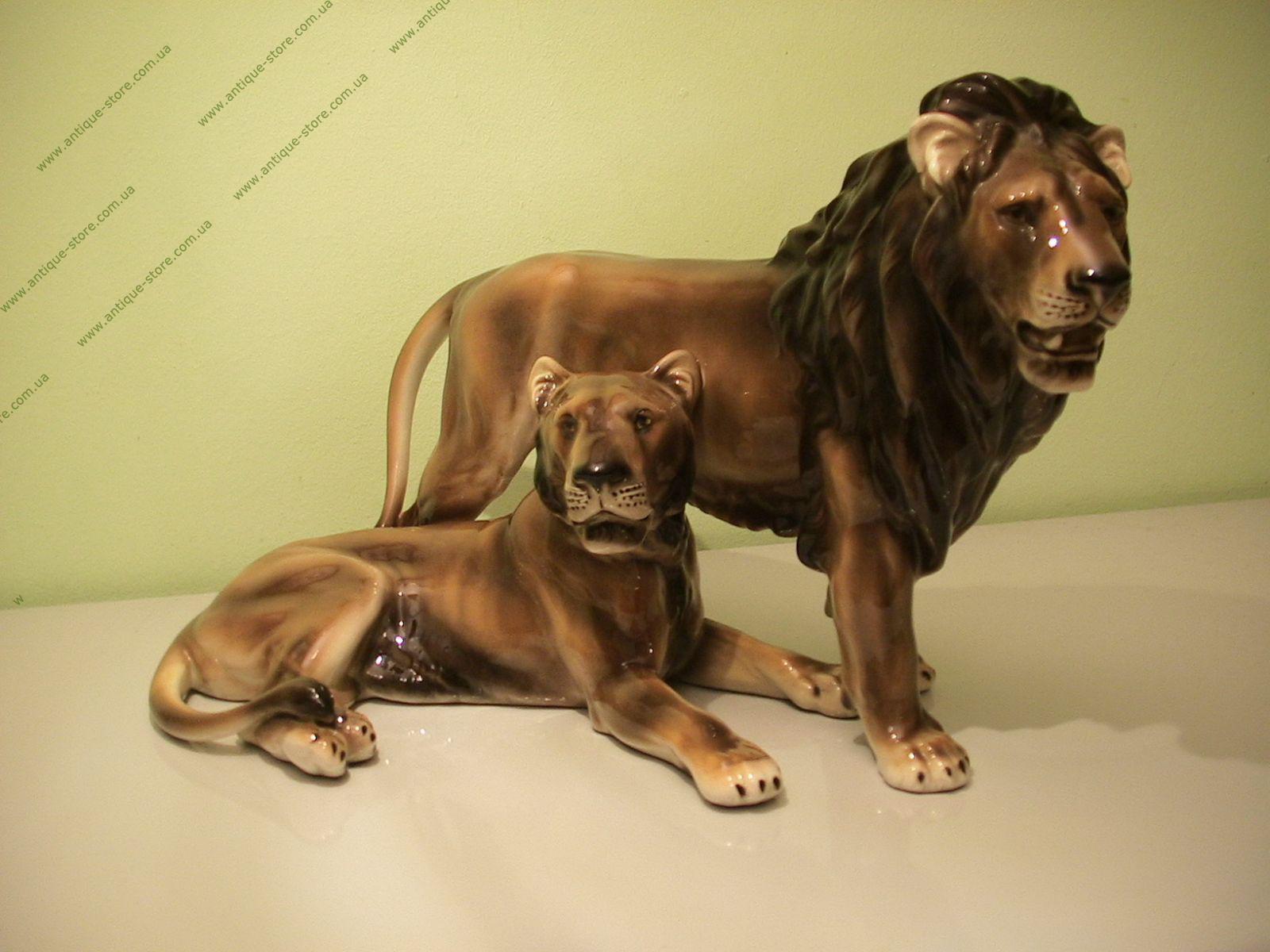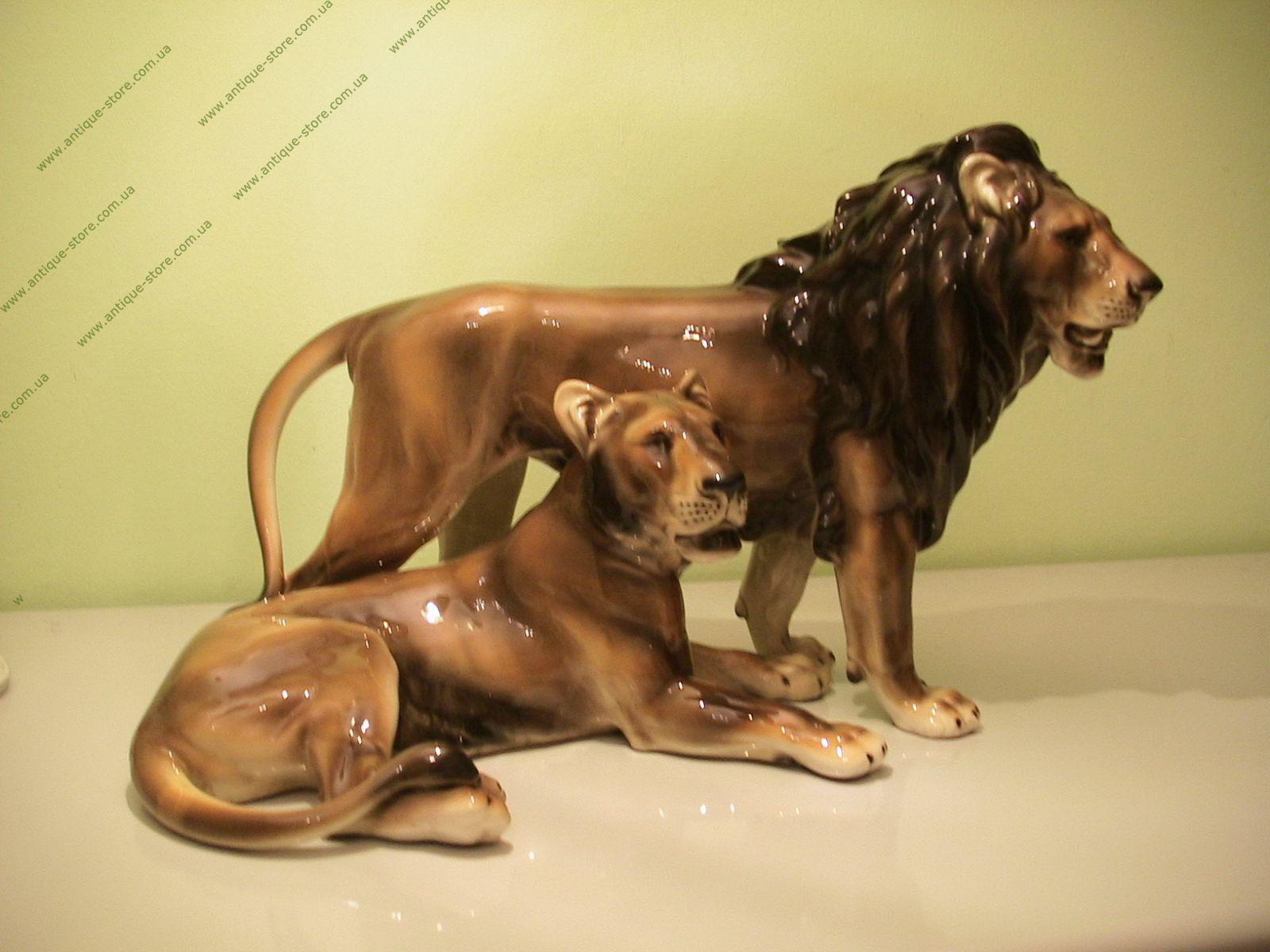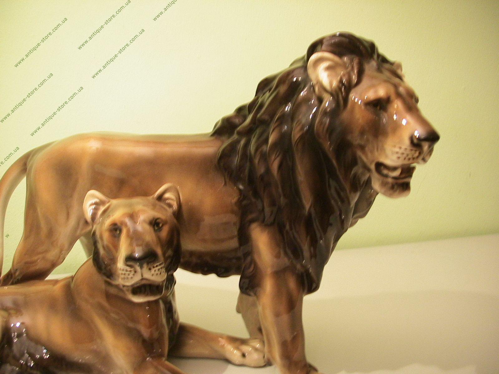 Редкая фарфоровая группа в стиле арт-деко, изображающая пару львов, всемирно известной венской мануфактуры "Австрийская керамика" (Austria Keramos Manufaktur ), Вена.