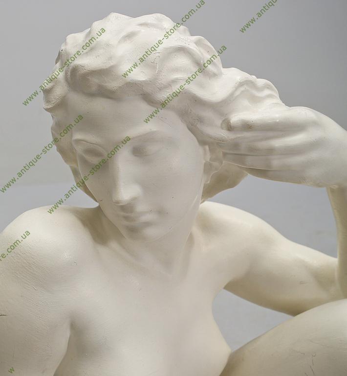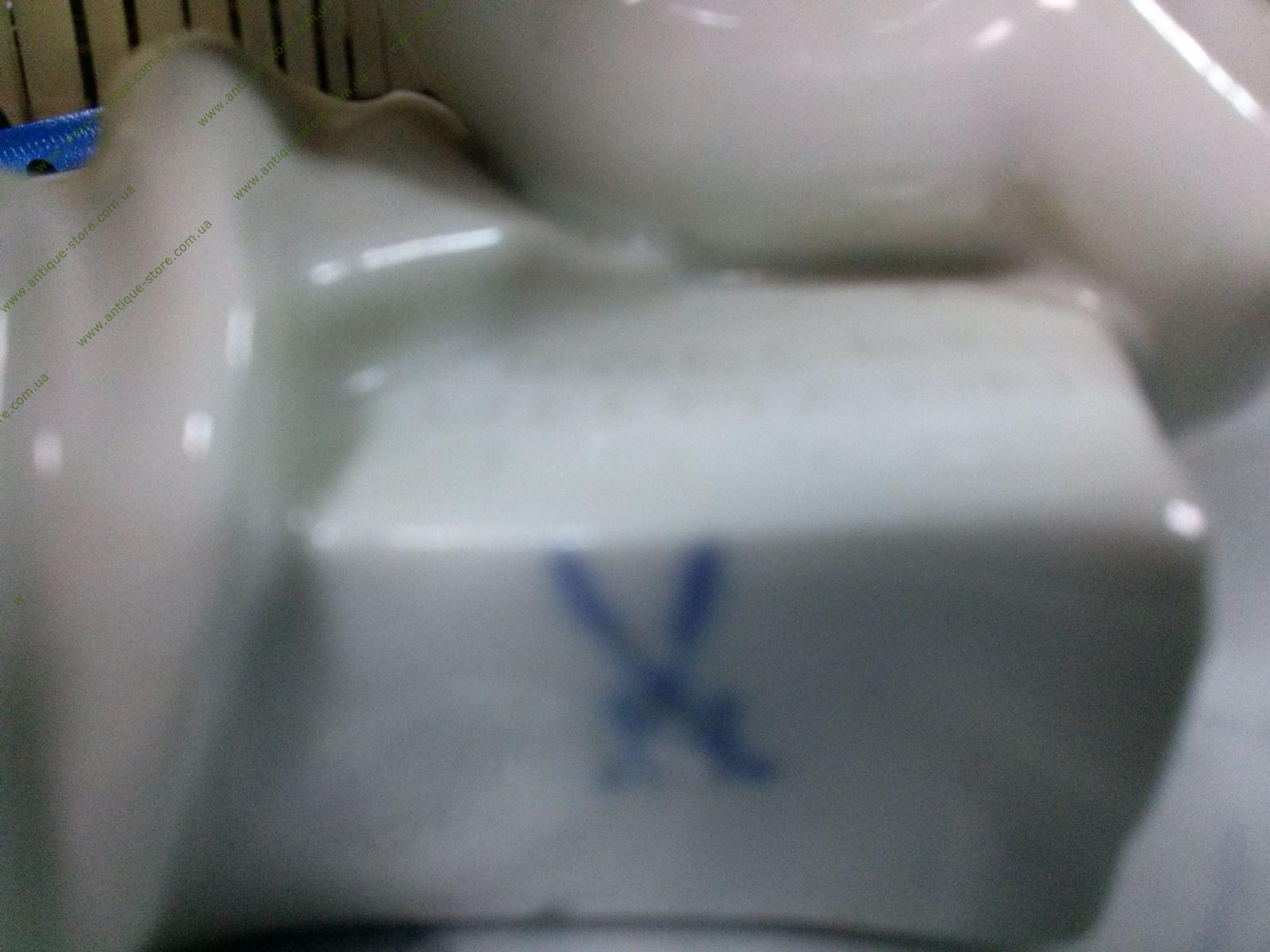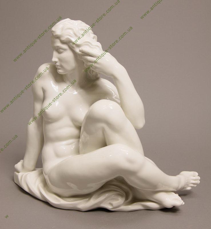 Великолепный мейсоновский фарфор. Настоящее произведение искусства. Фигура обнаженной известного австрийского скульптора Роберта Ульмана (Robert Ullmann) "Искусство третьего Рейха", выполненна из белого глазурованного фарфора, на цоколе подглазурное клеймо синего цвета: перекрещенные мечи, и оттиск имени автора: Robert Ullmann.