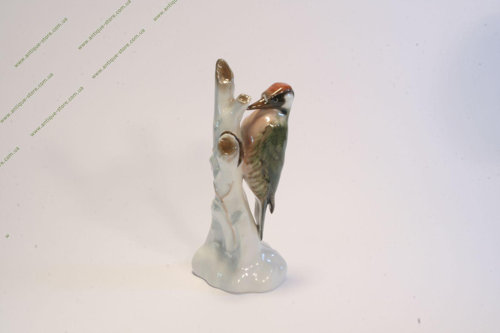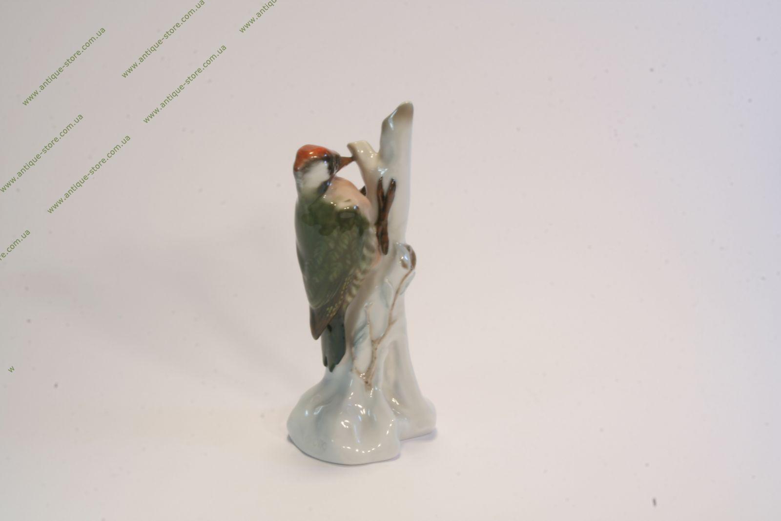 Великолепный розенталевский фарфор. Красивейшая статуэтка дятла на ветке. Фигура птицы выполнена очень натуралистично. Дятел выглядит совершенно как живой. Тончайшая превосходная поглазурная роспись. Настоящая находка для коллекционера и чудесное украшение интерьера. Розенталь (Rosenthal). Фриц Хейденрейх (F. Heidenreich).