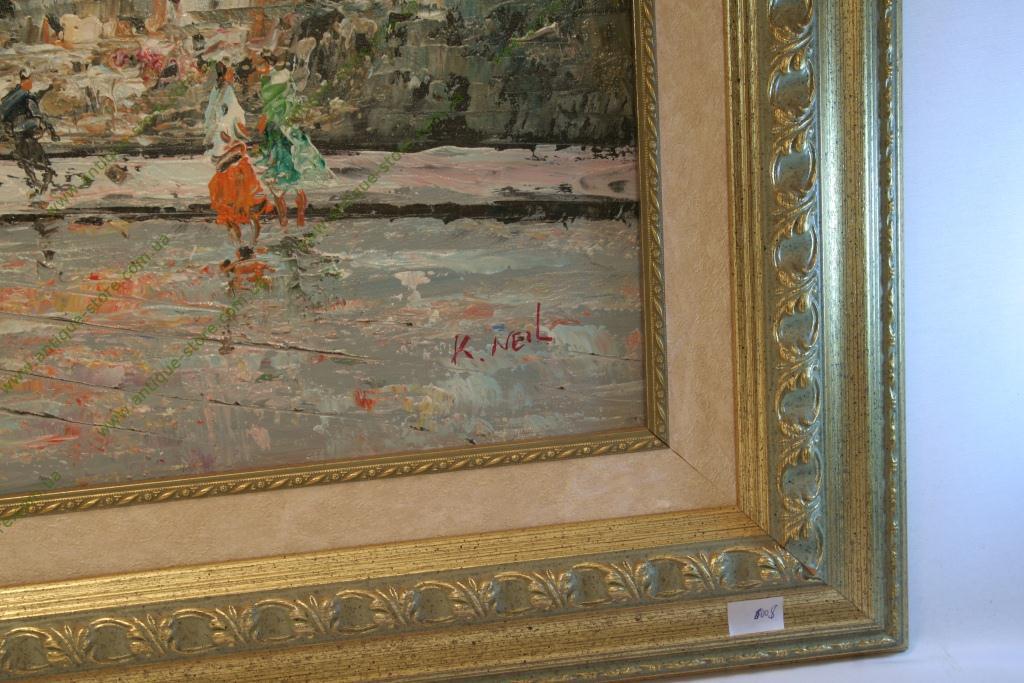Городской пейзаж, Париж, Монмартр, картина написана в стиле импрессионизм, передает особую романтику старого города, принадлежащая кисти художника К. Нэйла (K. Nail), справа внизу подпись автора.