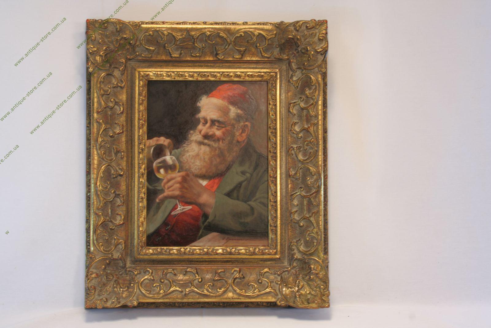 Жизнеутверждающий портрет еврейского старца с бокалом вина. Живопись академического уровня. Внизу подпись автора.