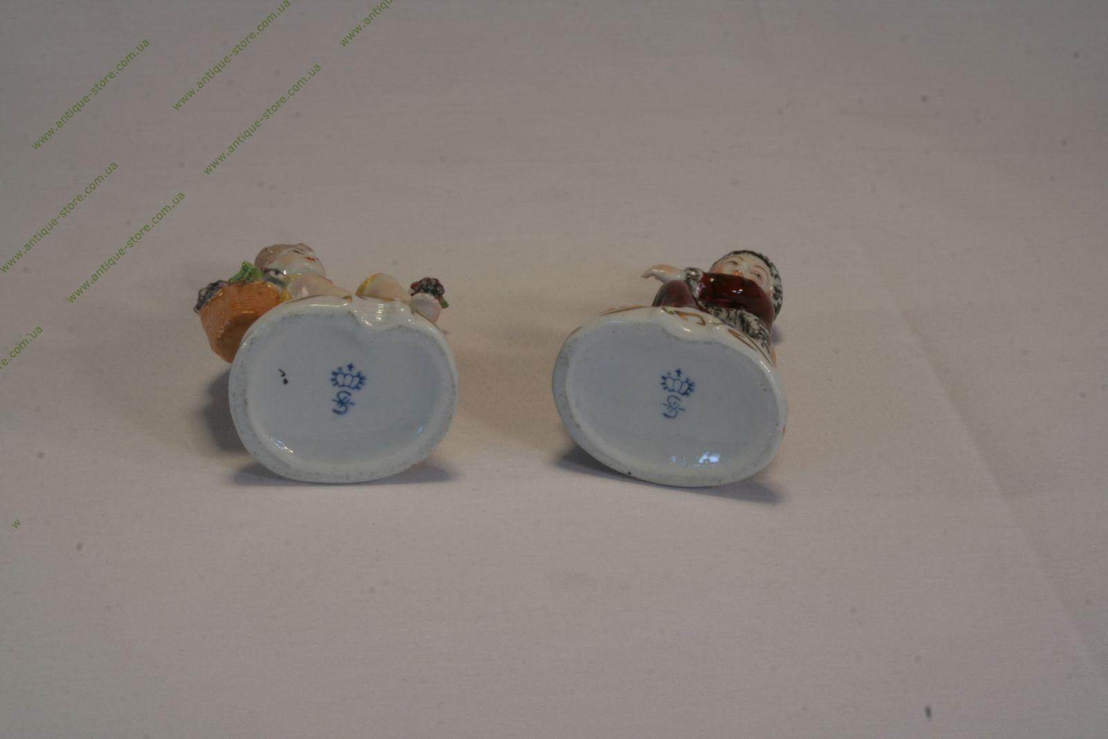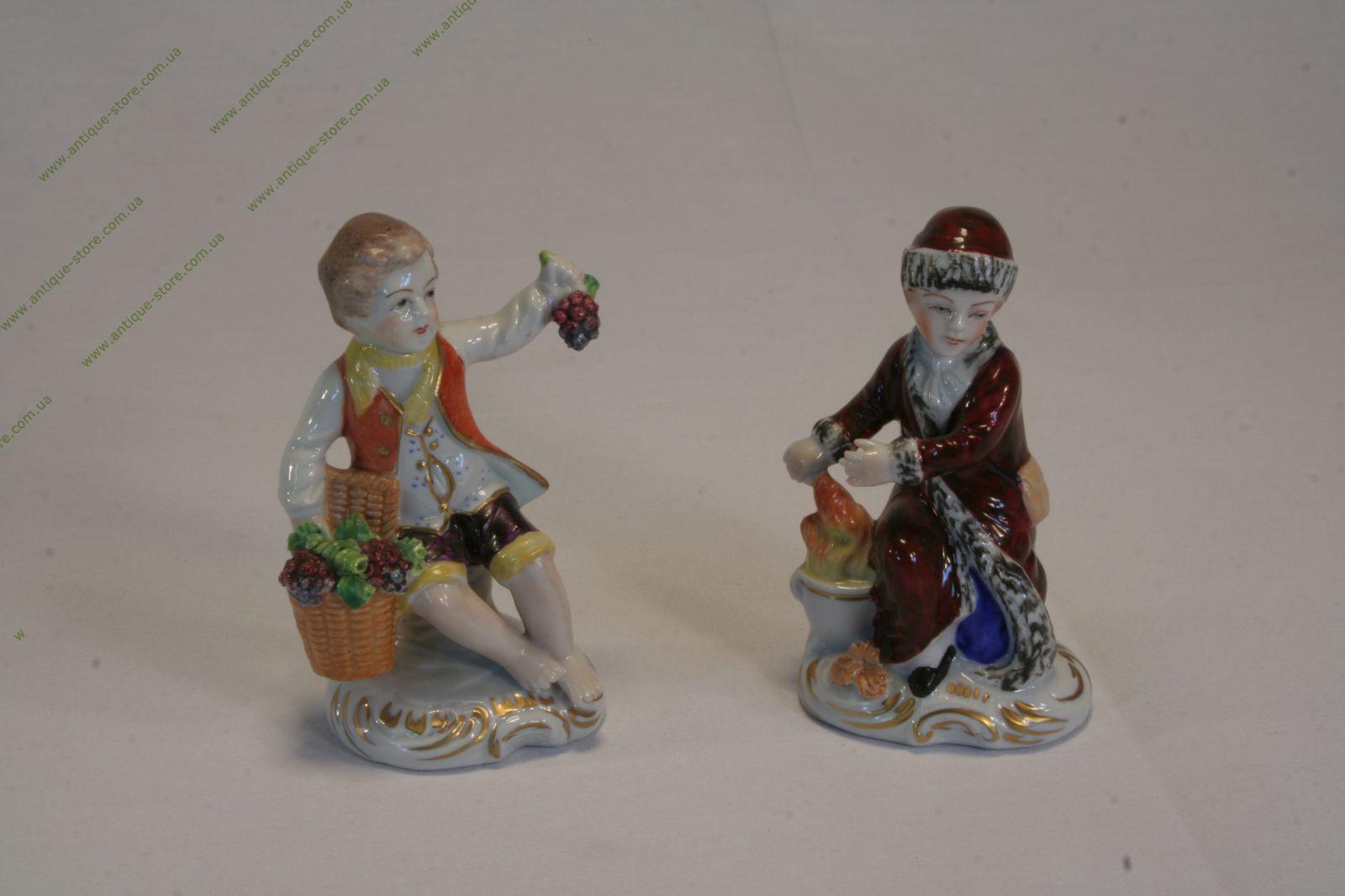 Фарфоровая группа, изображающая аллегорию времен года (зима и осень)в виде детей в стиле барокко, немецкой фарфоровой мануфактуры Зитцендорф (Sitzendorf).
