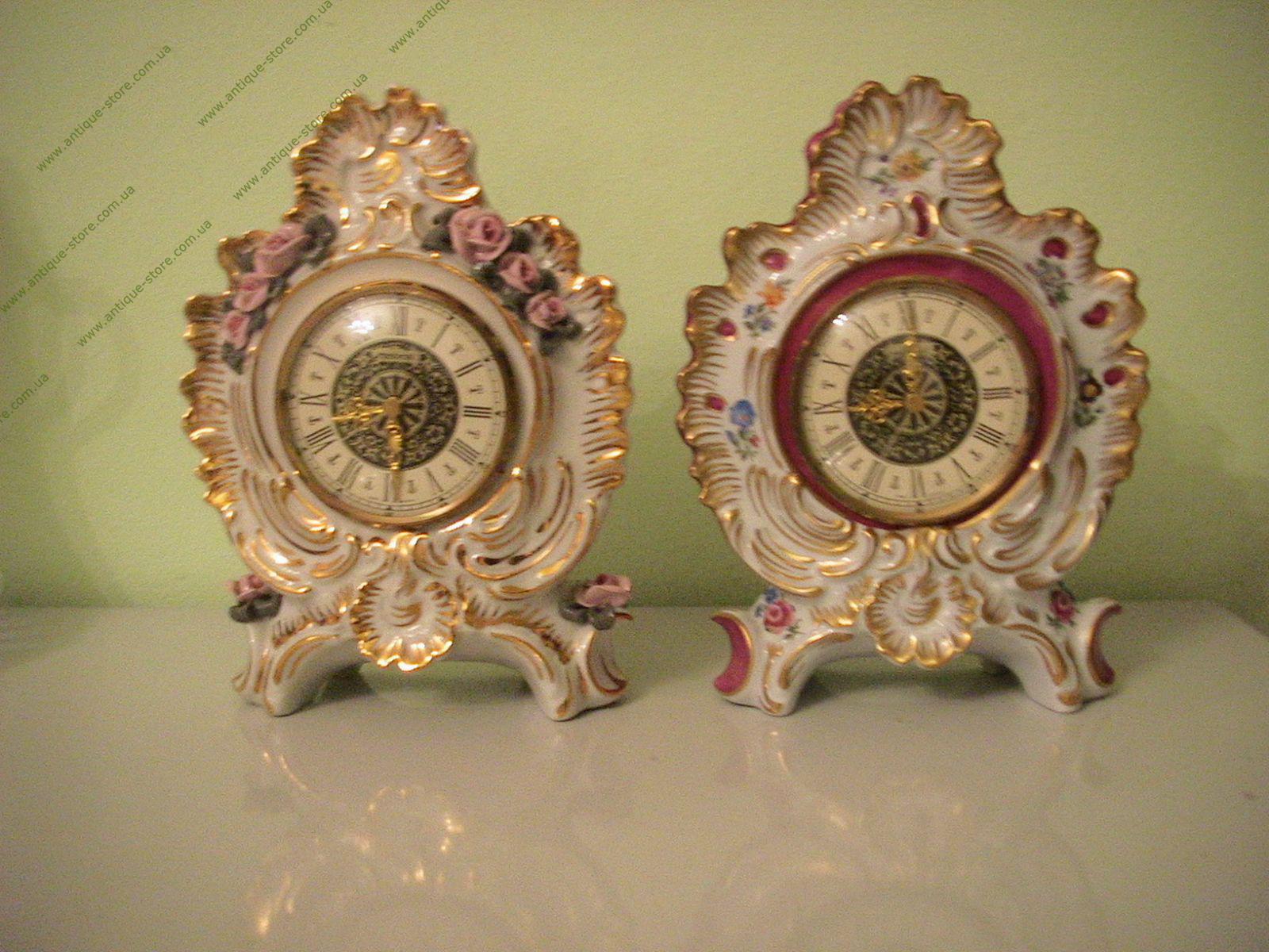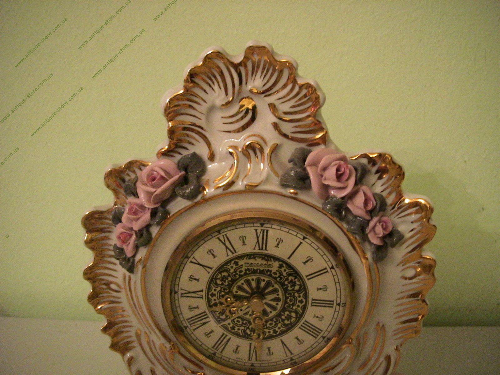 Фарфоровые часы в стиле рококо. Часы кварцевые. Технически исправны. Производства немецкой фабрики фарфора Дрезден (Dresden).
