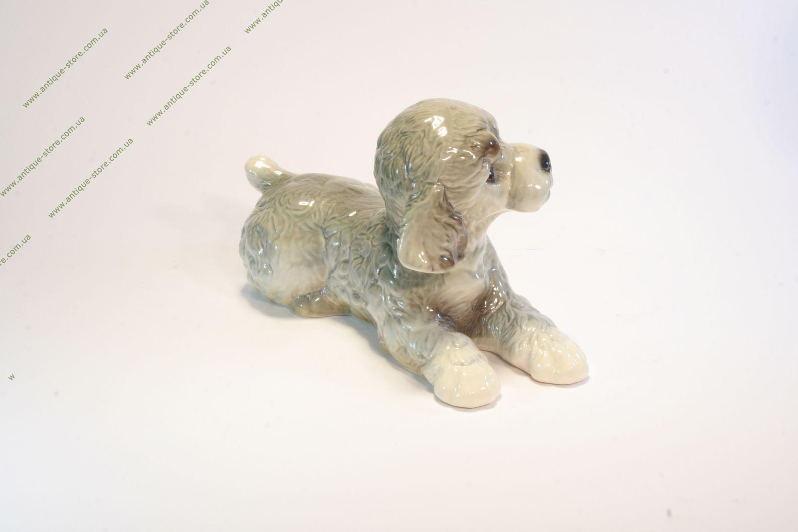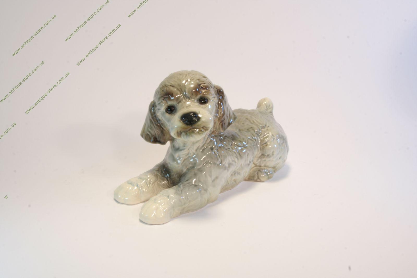 Фигура изображает лежащую собаку породы серый пудель - фигурка производства знаменитой немецкой мануфактуры "Гебель"(W.Goebel), основанной в 1871 г.