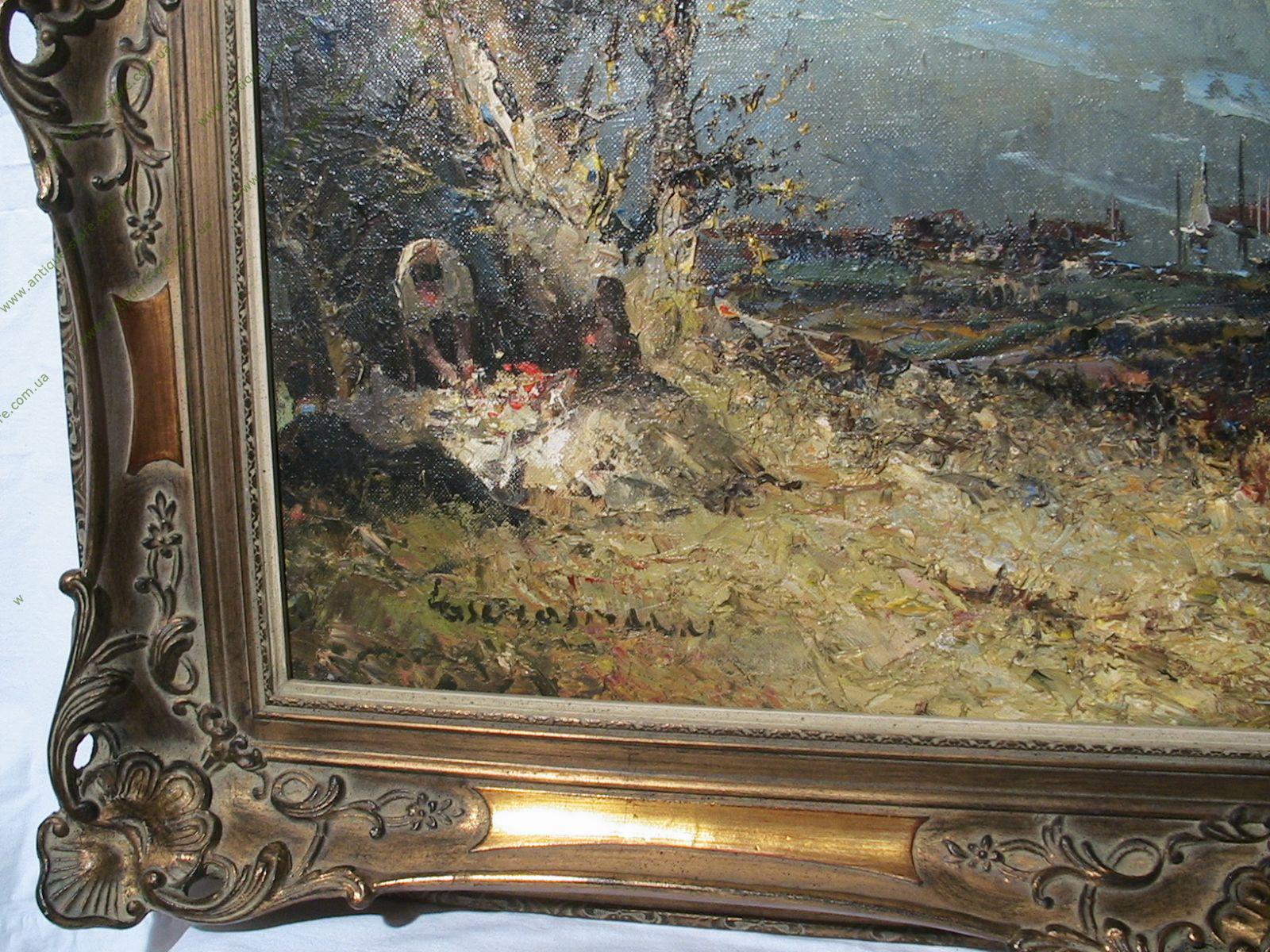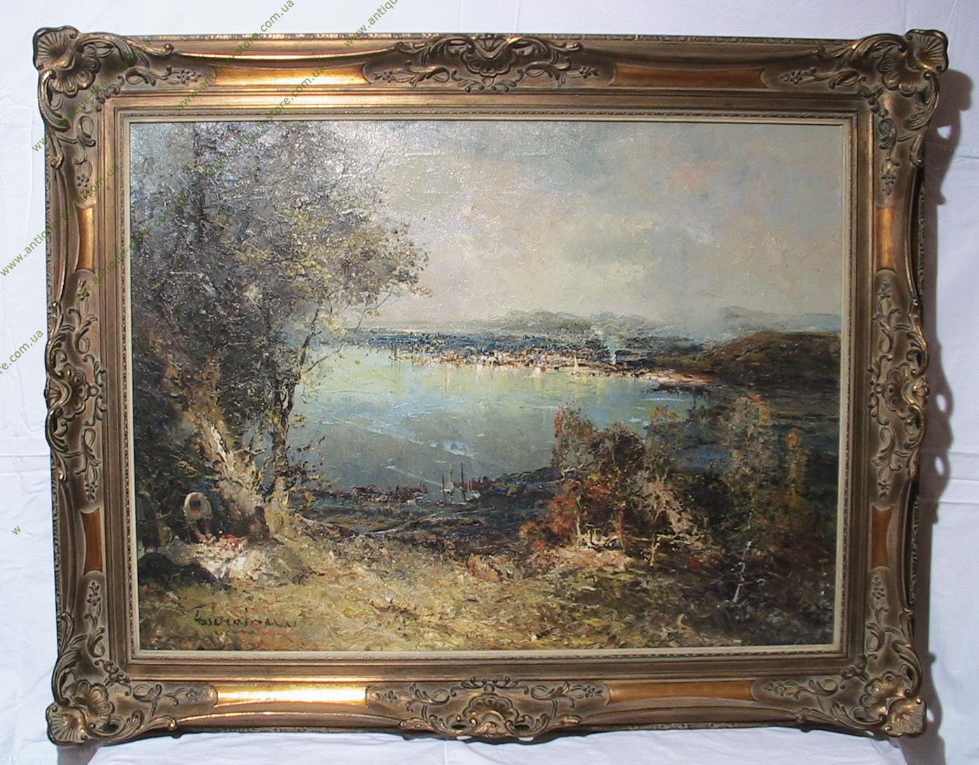 Картина, изображающая пейзаж у Цюрихского озера, написанная в стиле импрессионизм, принадлежащая кисти знаменитого немецкого художника Людвига Гшоссмана (Ludwig Gschossmann), (1894 - 1988), полотна которого успешно продаются на аукционах мира, в частности на аукционах «Со́тбис» ( Sotheby's) и «Кри́стис» (Christie’s).