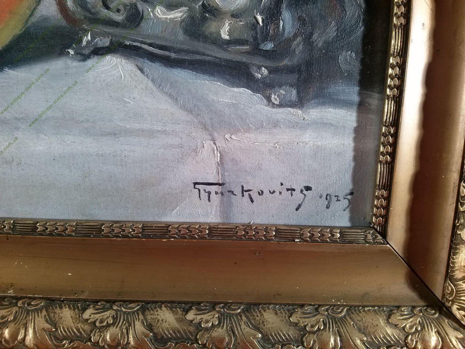 Натюрморт, выполненный в реалистической манере, характерной для работ известного художника Gyurkovits Ferenc (1876 - 1968). Работа оформлена в багетную раму.