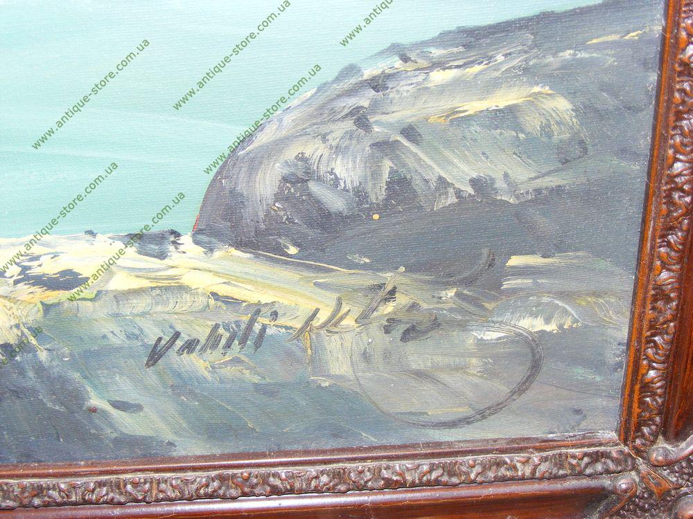 Морской пейзаж в стиле романтизм, изображающий начало шторма, внизу справа неразборчиво подпись автора
