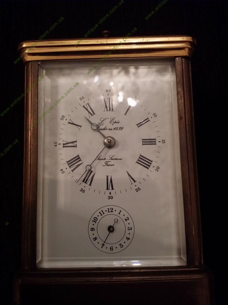 Часы каретные. «L´ Epee», Франция, конец 19-го — нач. 20-го века, материал: позолоченная бронза, в хорошем состоянии, с рабочим меха низмом, с боем, будильником.