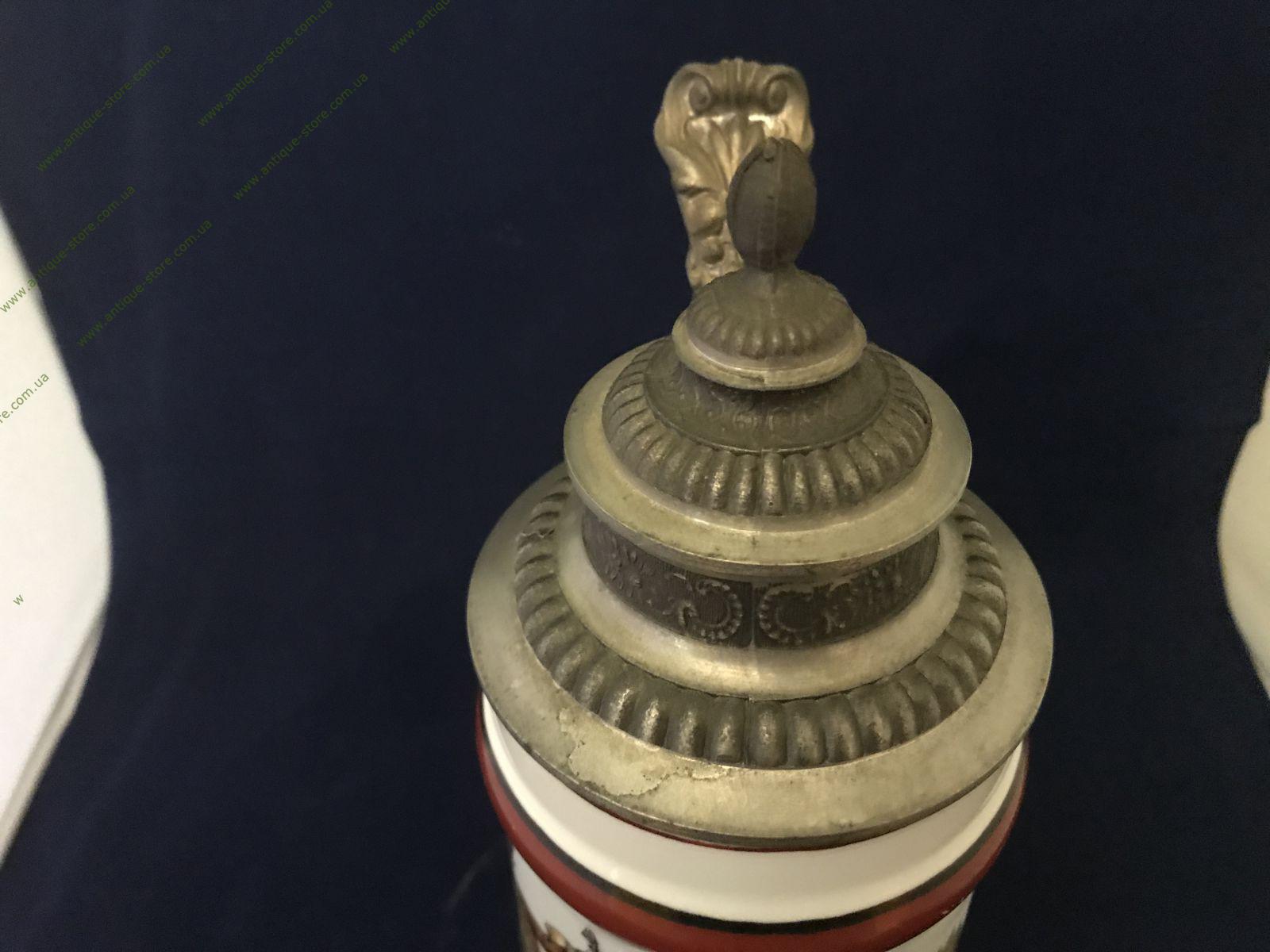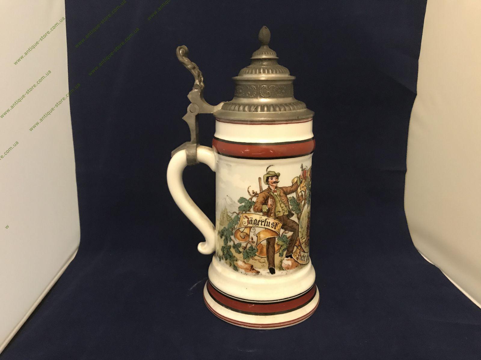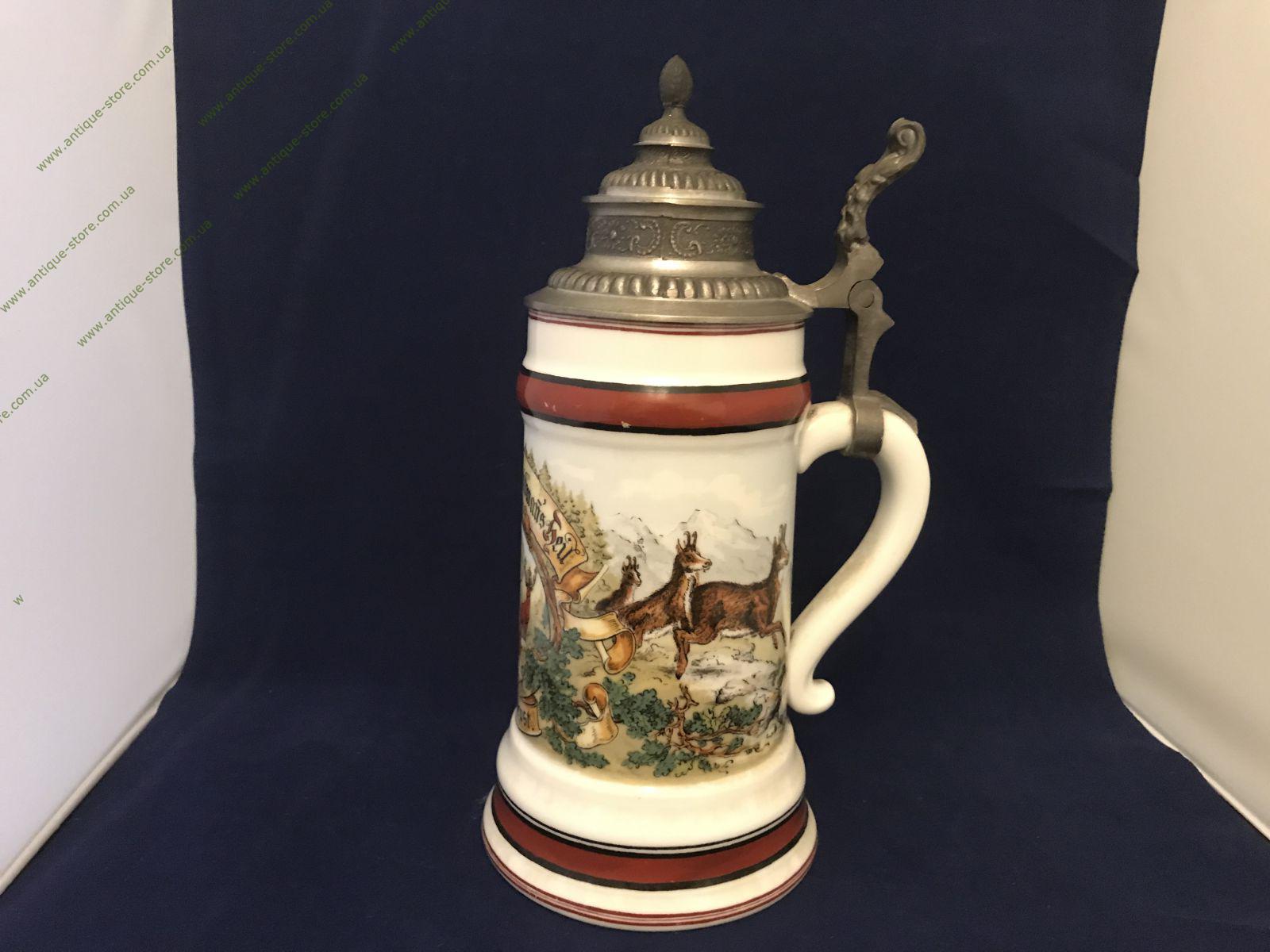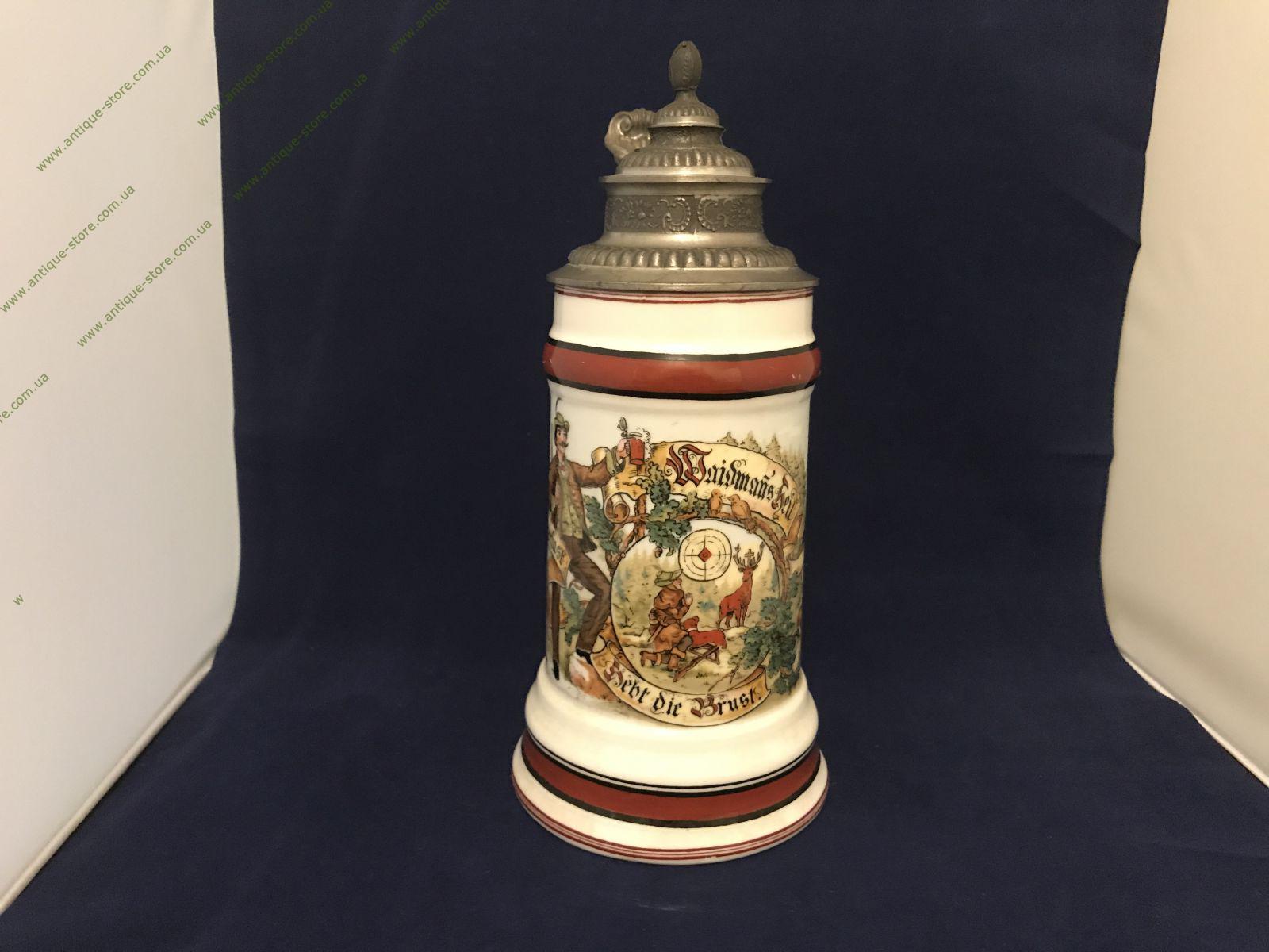Немецкая пивная кружка украшенная ручной росписью с изображением сцены охоты. Кружку венчает классическая каноническая крышка . Прекрасный мужской подарок и отличный предмет в коллекцию!