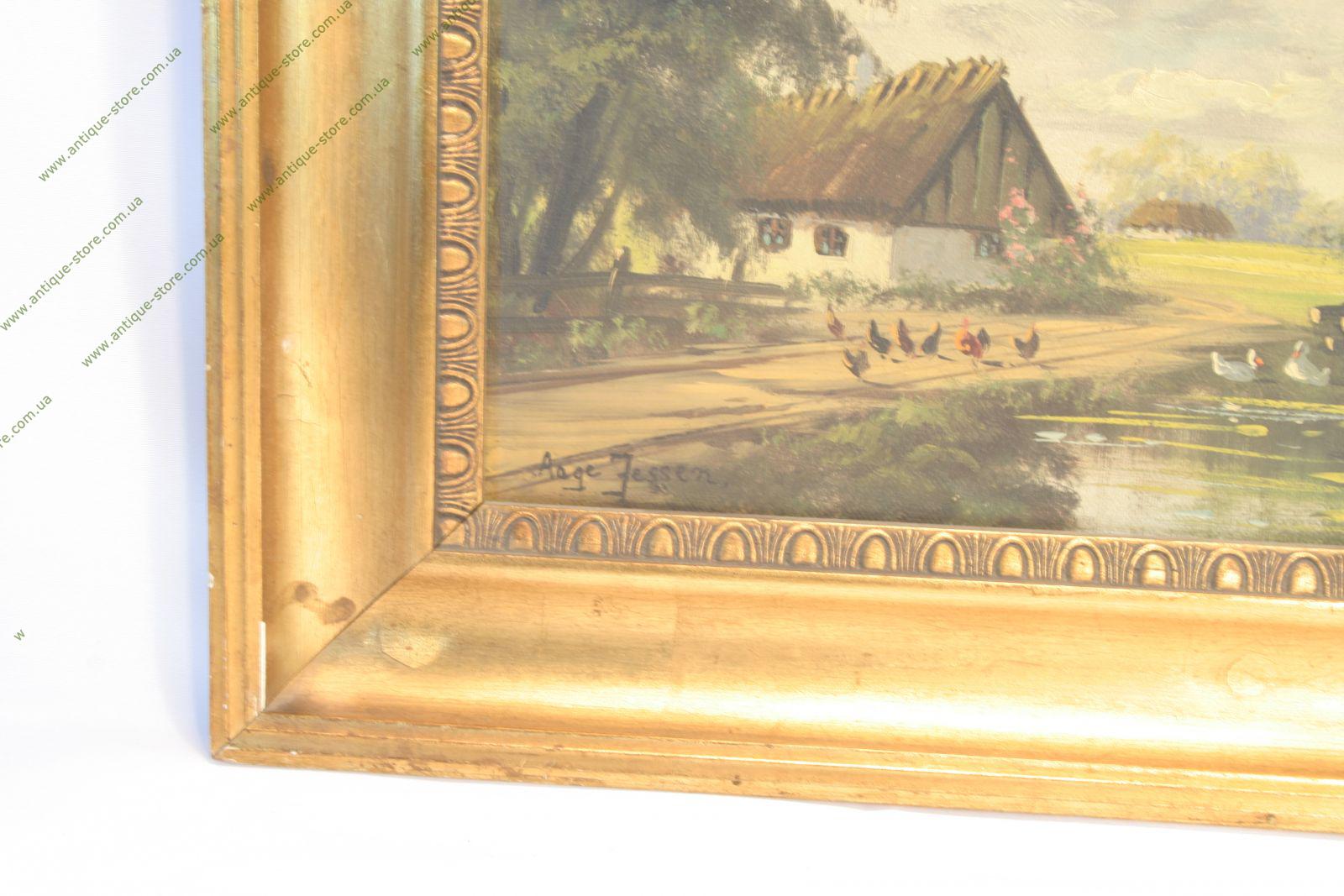 Деревенский пейзаж в романтическом стиле. В багетной раме. Работа конца 1900 г. Подпись автора в левом нижнем углу. Украшение для любого интерьера.