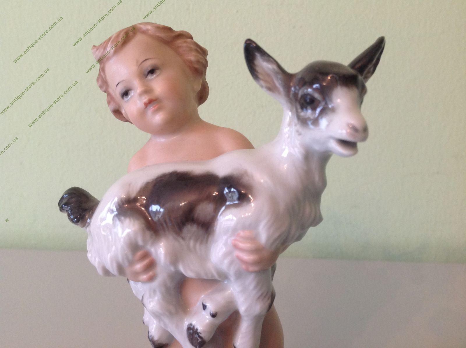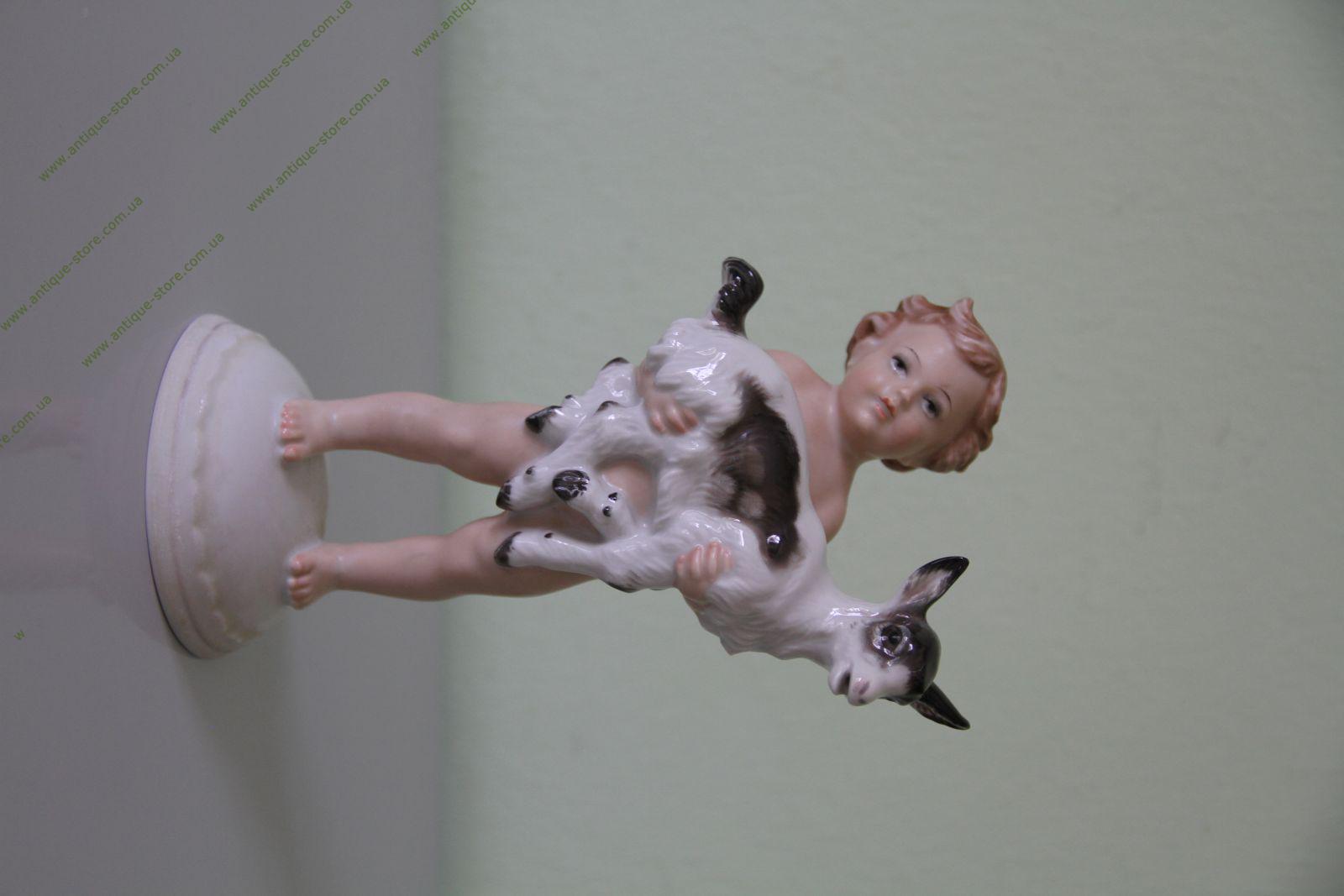 купить фарфор, статуэтка фарфоровая ребенок с козленком, фарфор мальчик с козленком,  мальчик с козленком, Германия, Розенталь (Rosenthal), Макс Х. Д. Фриц (Max H.D. Fritz )