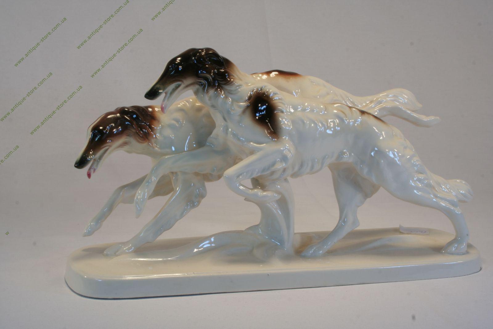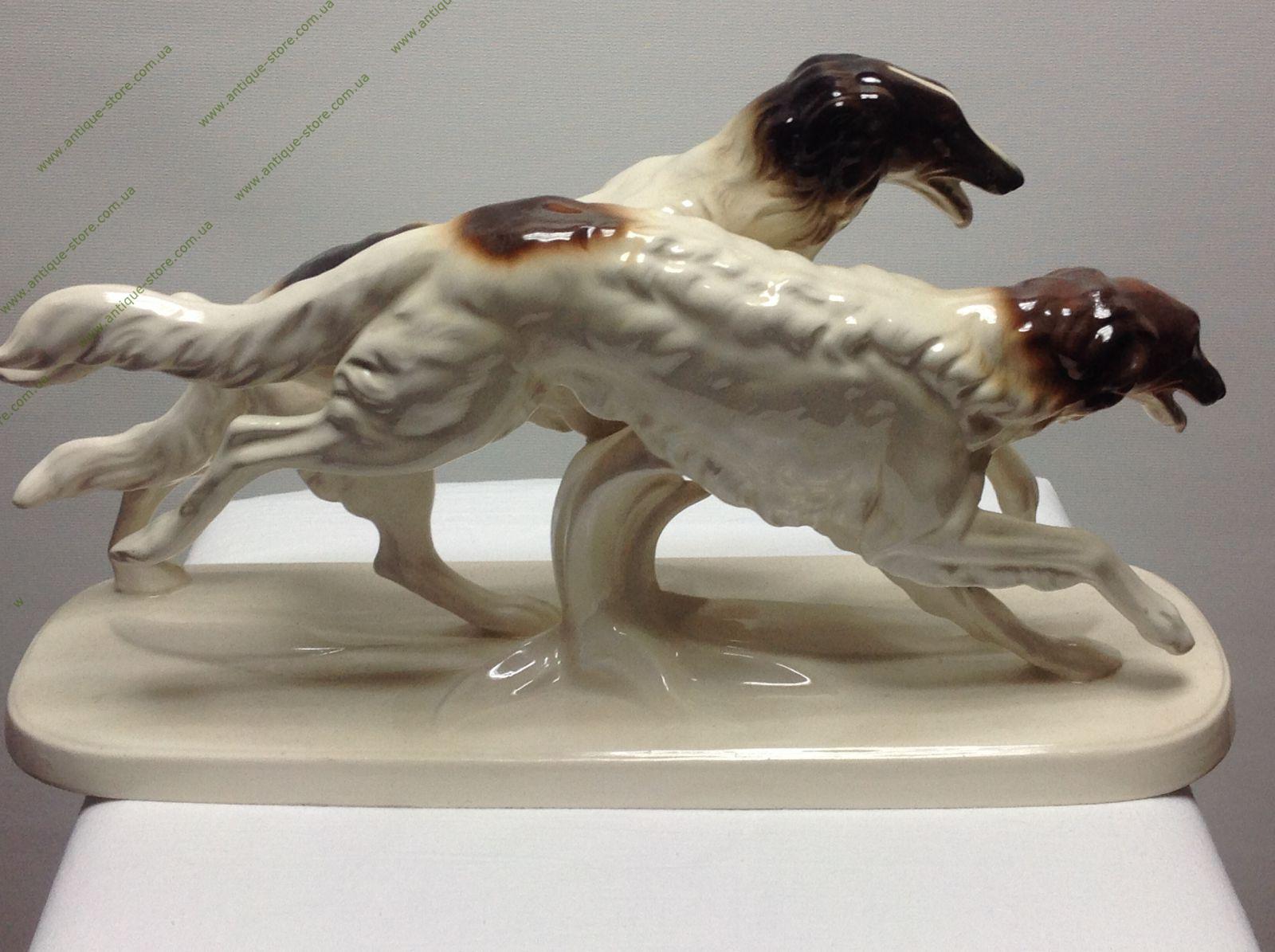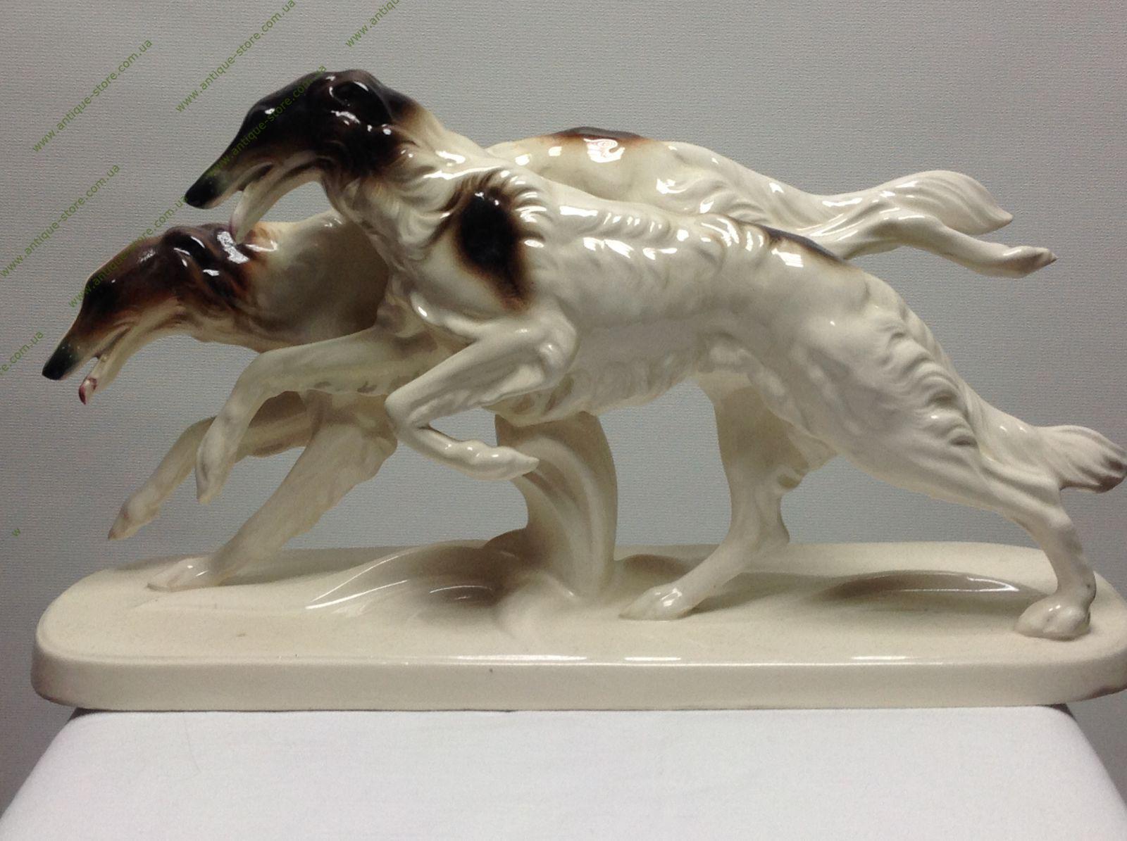 Фигура бегущих борзых производства немецкой мануфактуры Хертвиг (Hertwig), прославившейся на производстве фигур животных.