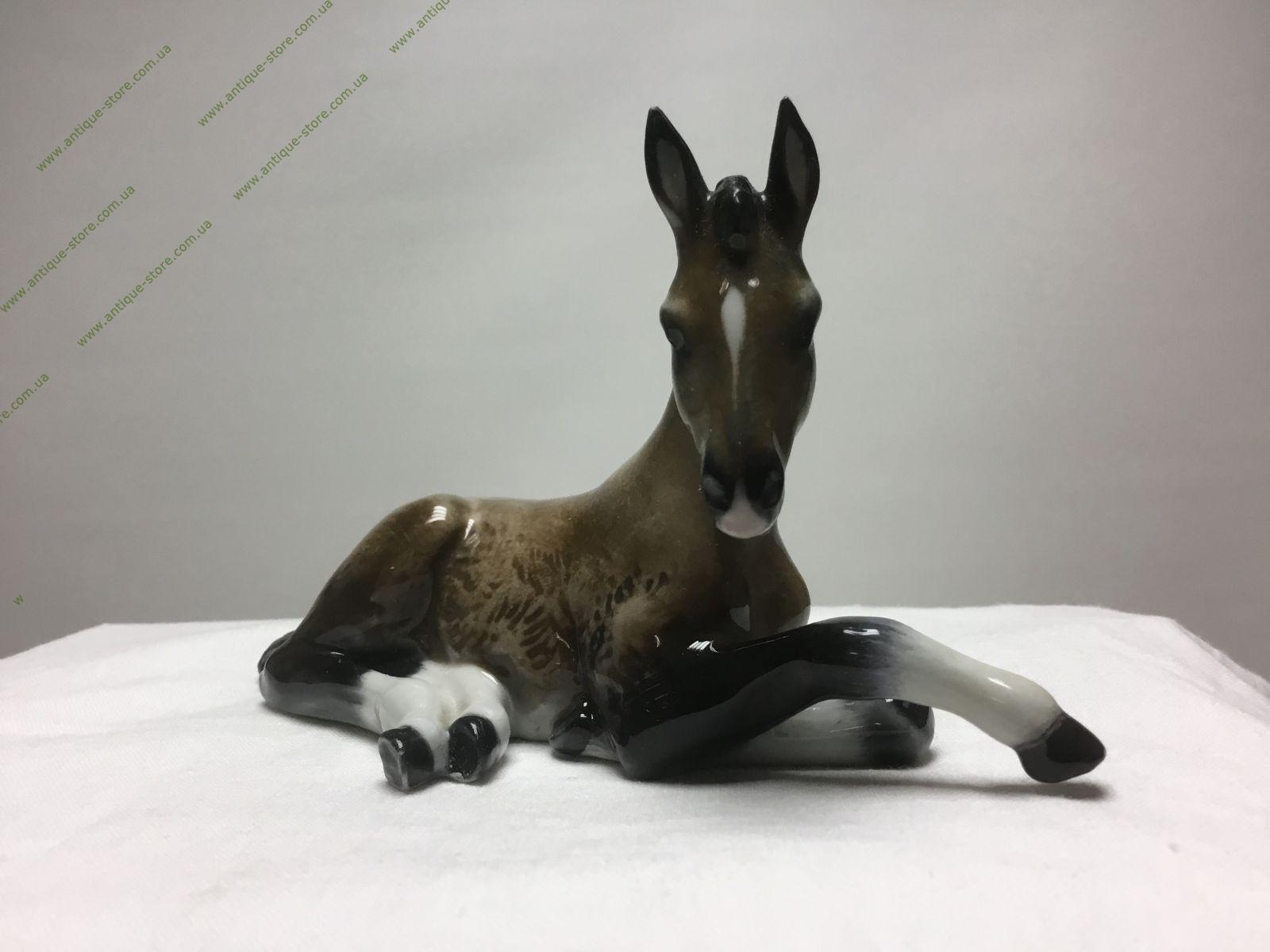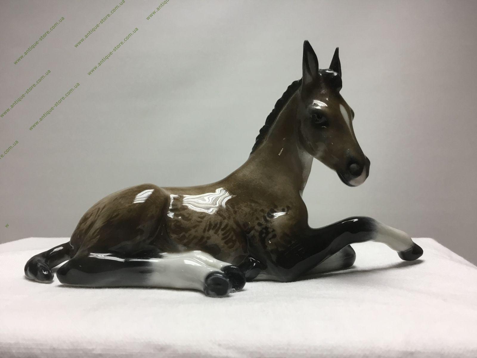 Фарфоровая фигурка лежащего жеребенка, с подглазурным клеймом мануфактуры Розенталь (Rosenthal). Работа знаменитого художника фабрики Розенталь (Rosenthal) Фрица Хайденрейха (Fritz Heidenreich). .