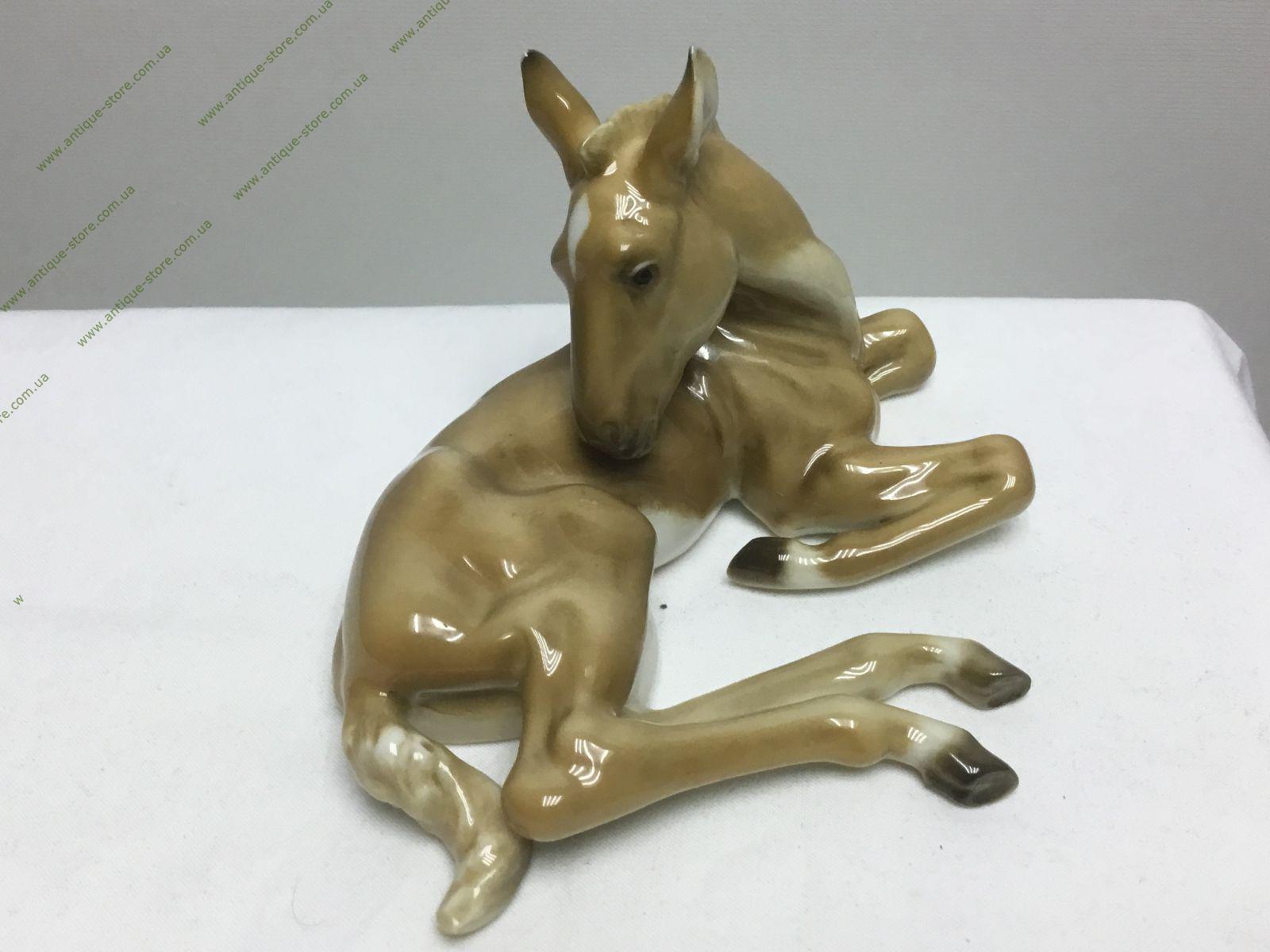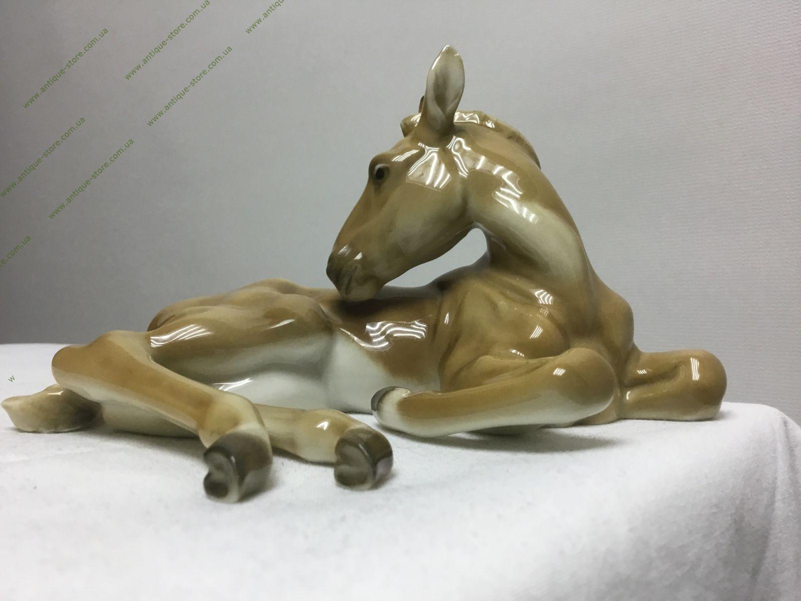 Фарфоровая фигурка, лежащего жеребенка, с подглазурным клеймом мануфактуры Хутченройтер (Hutschenreuther) на обратной стороне, автор Ганс Ахцигер (Hans Achtzigerr) .