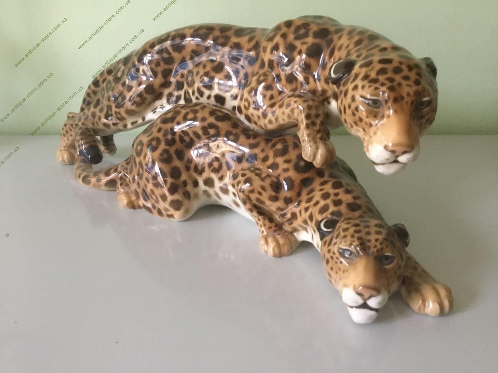Фарфоровая фигурка двух леопардов, с подглазурным клеймом мануфактуры Хутченройтер (Hutschenreuther) на обратной стороне., номер 1021/21, автор Карл Туттер