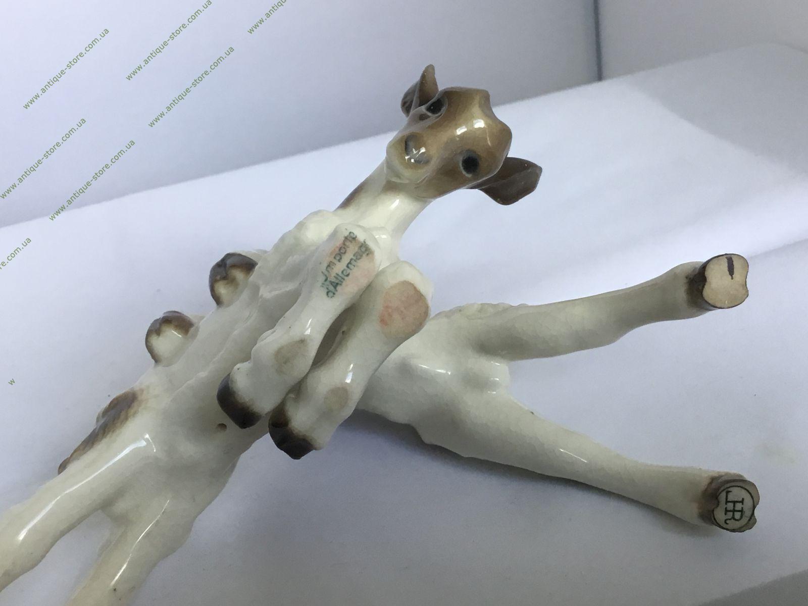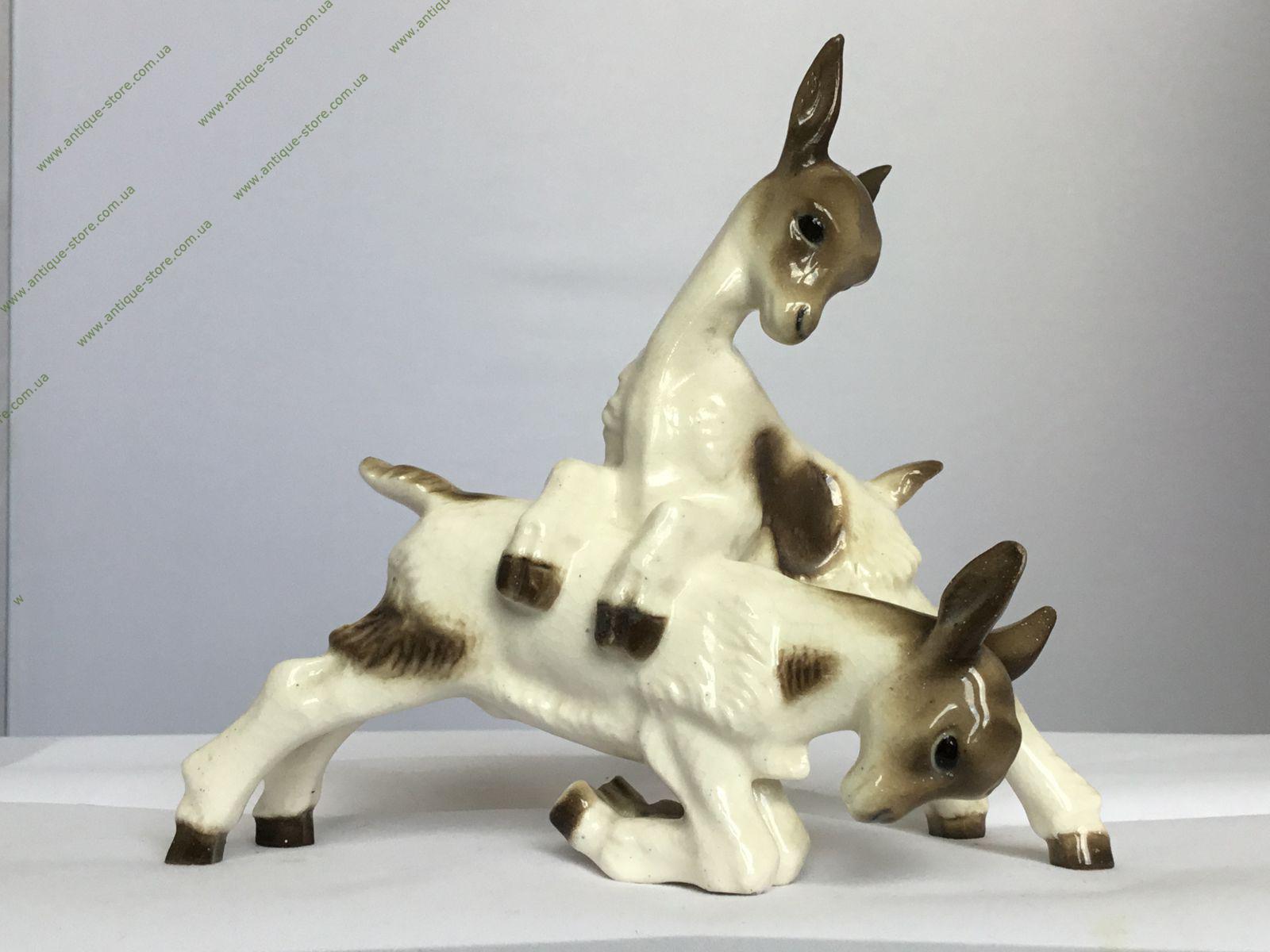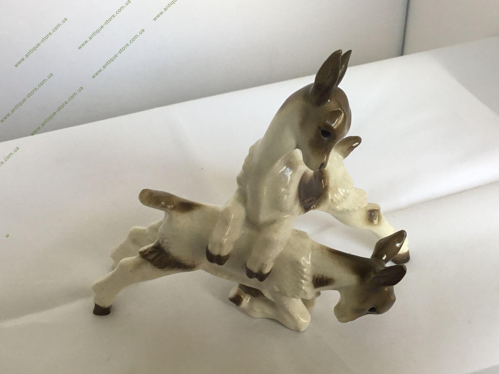 Фарфоровая фигурка двух играющих козлят, с подглазурным клеймом мануфактуры Хутченройтер (Hutschenreuther) на обратной стороне.