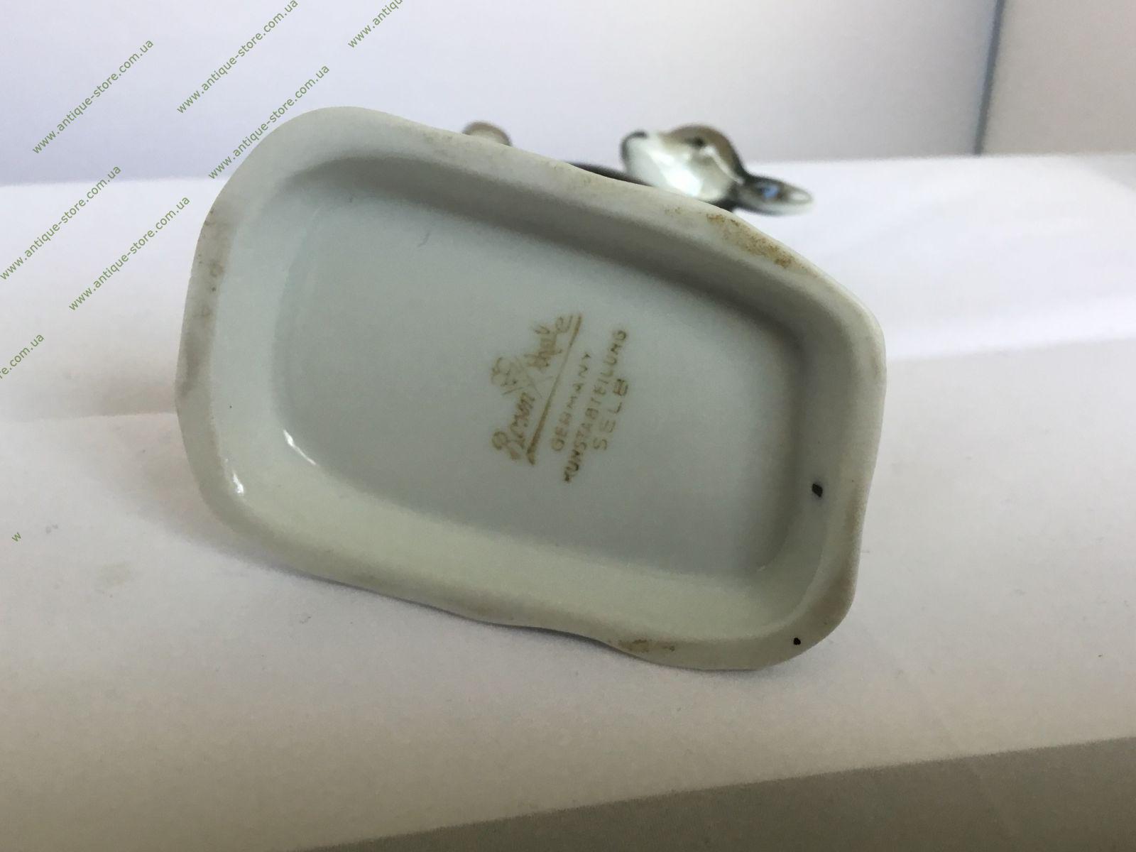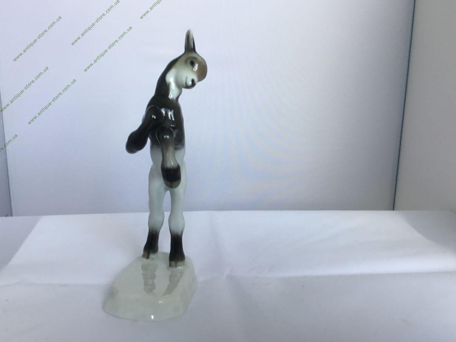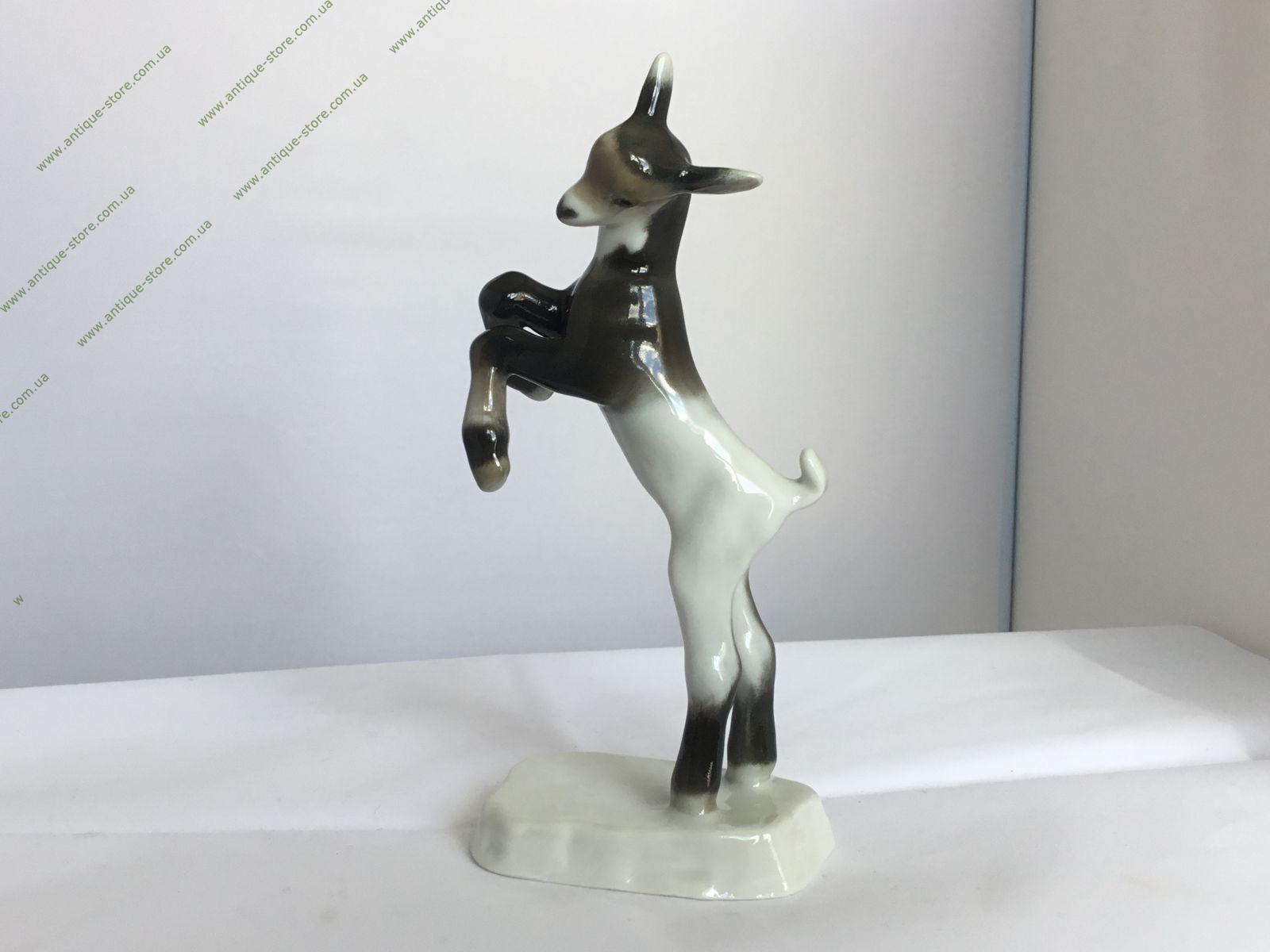 Фарфоровая фигурка стоящего козлёнка. Работа знаменитого художника Августа Крауса (August Kraus). Подглазурное золотое клеймо мануфактуры Розенталь.
