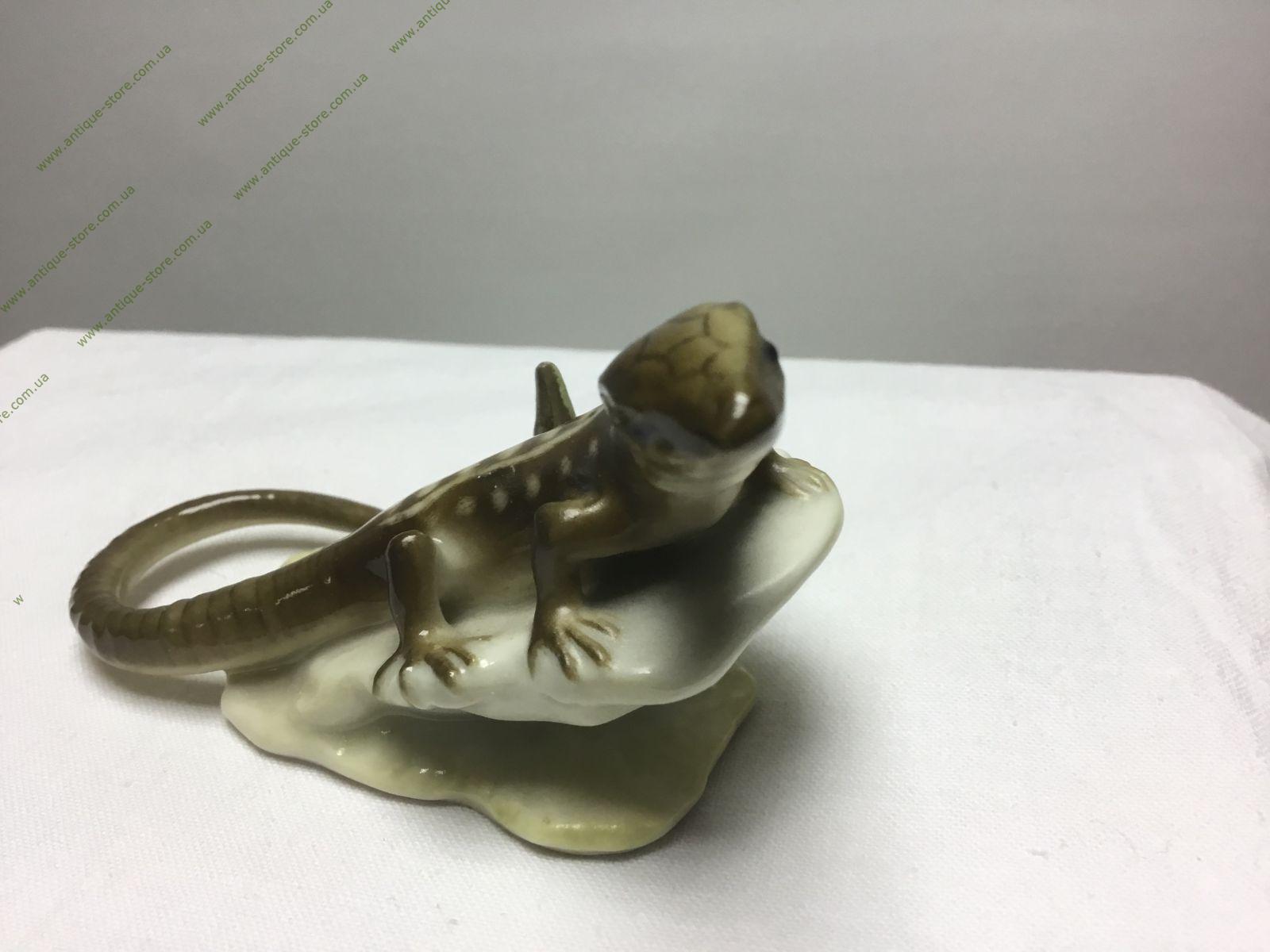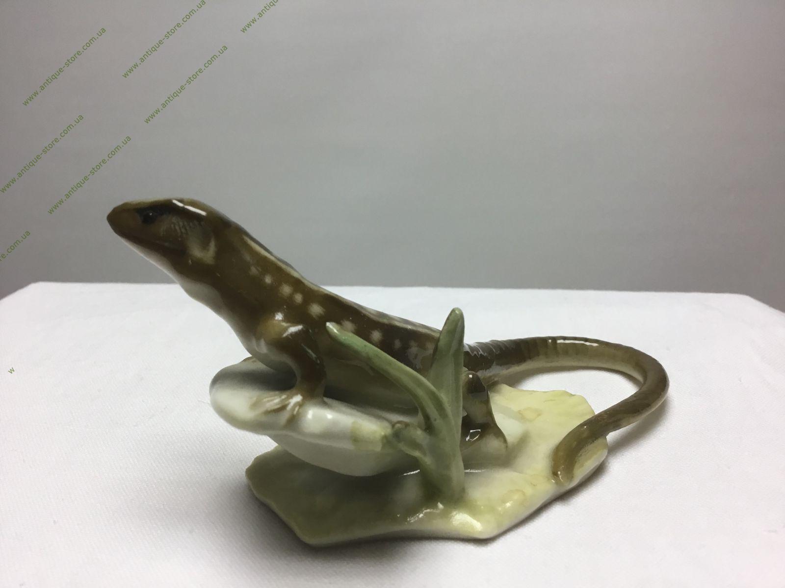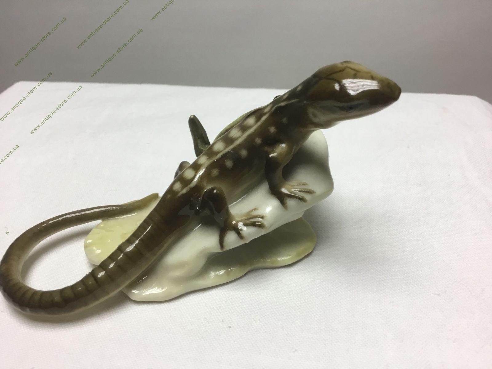 Редкая фарфоровая статуэтка ящерицы, сидящей на камне. Работа знаменитого художника Х. Ахцигера (H. Achtziger). Производство крупнейшего немецкого концерна Hutschenreuther (Хутченройтер), основанного в 1814 году в Баварии художником Карлом Магнусом Хутченройтером.