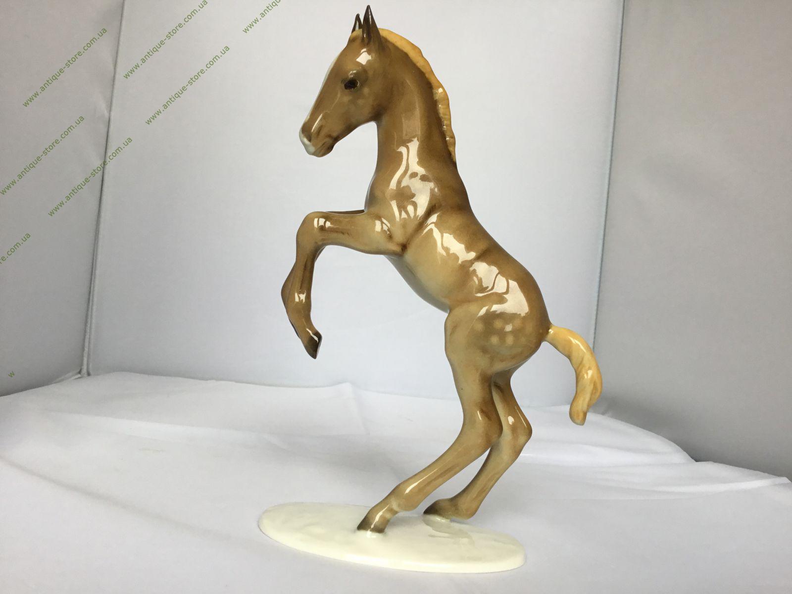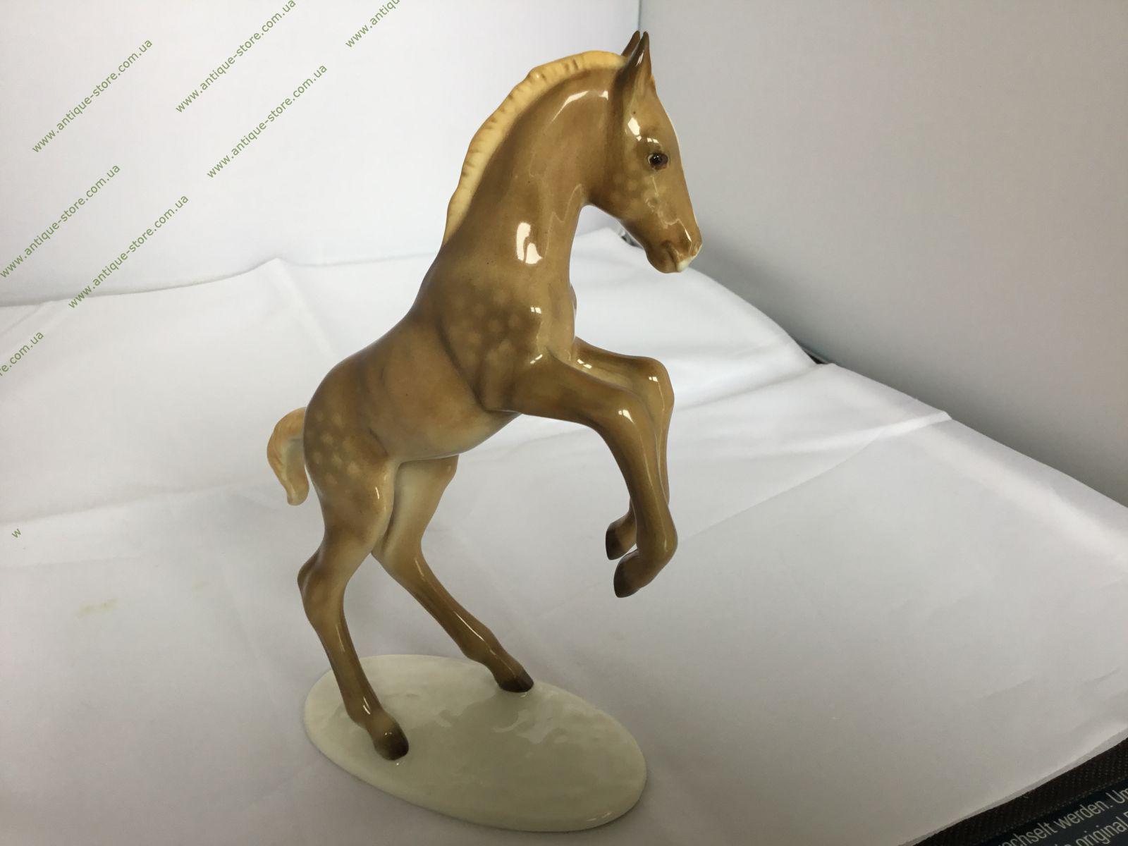 Статуэтка скачущего жеребёнка, с золотым подглазурным клеймом мануфактуры Хутченройтер (Hutschenreuther) на обратной стороне, номер в тесте 8062, художник M.H. Fritz