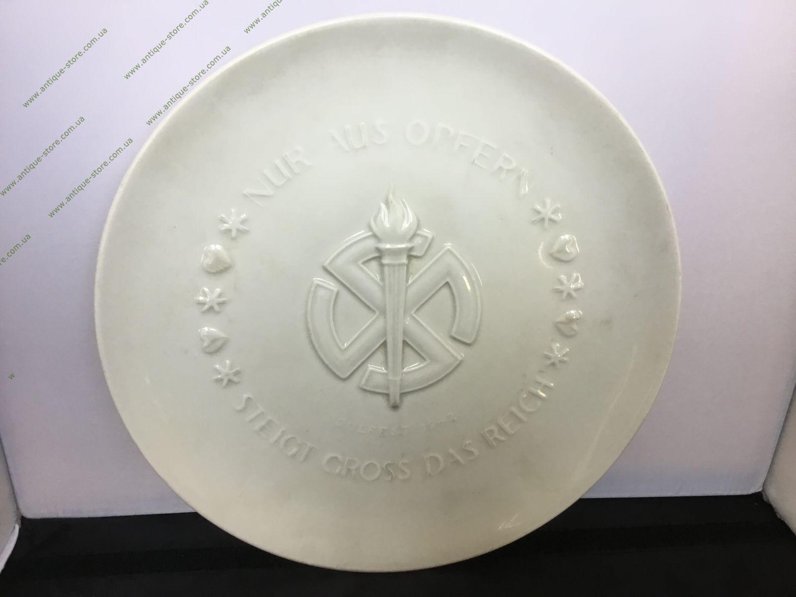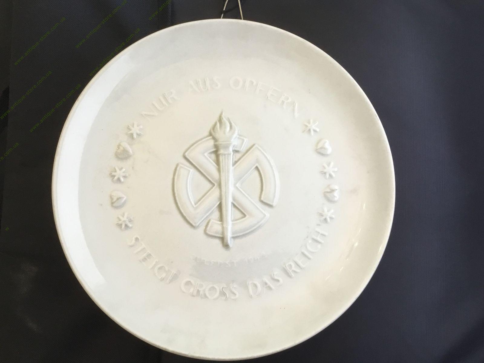 Наградная тарелка Allach к Йольфесту (празднику зимнего солнцестояния) 1942 года (Julfest 1942). Лицевая сторона украшена. Размер: 255 мм. Надпись: