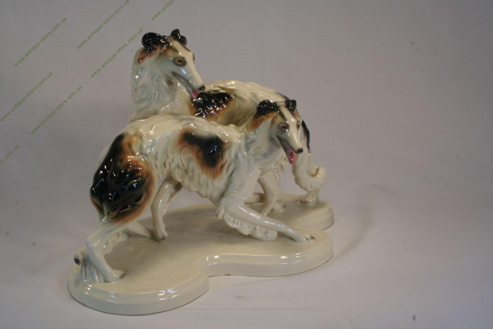 Фарфоровая фигура, изображающая двух борзых на подставке, производства известной марки Кортендорф (Cortendorf), Геpмания.