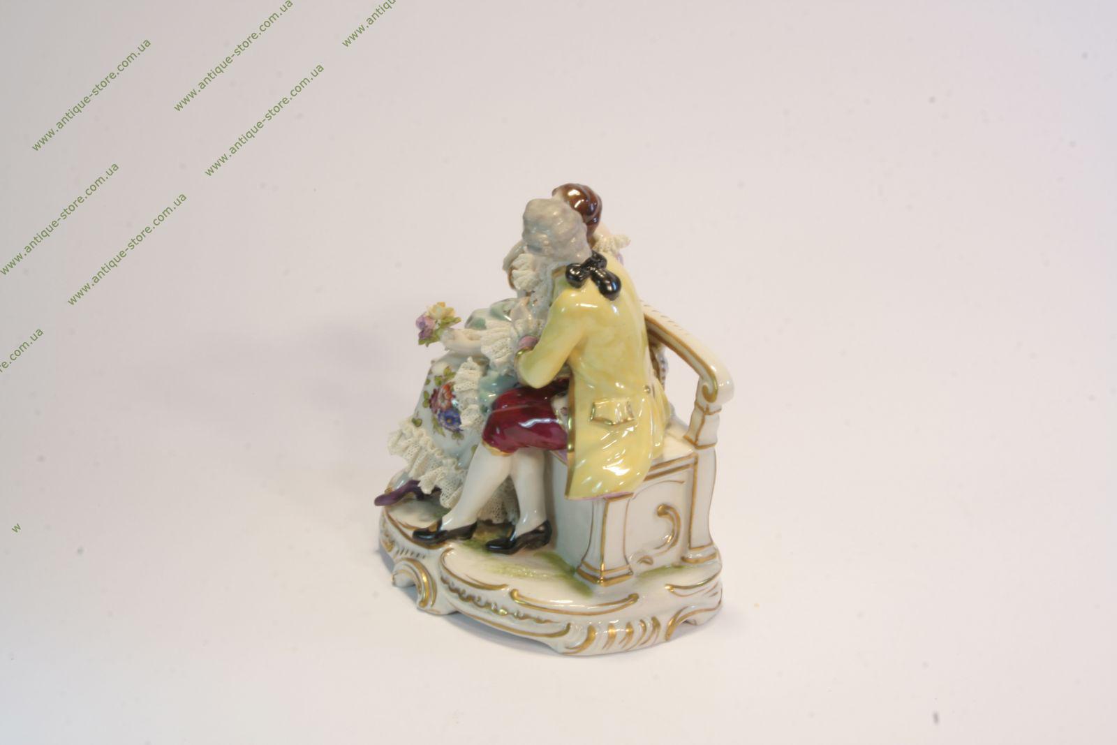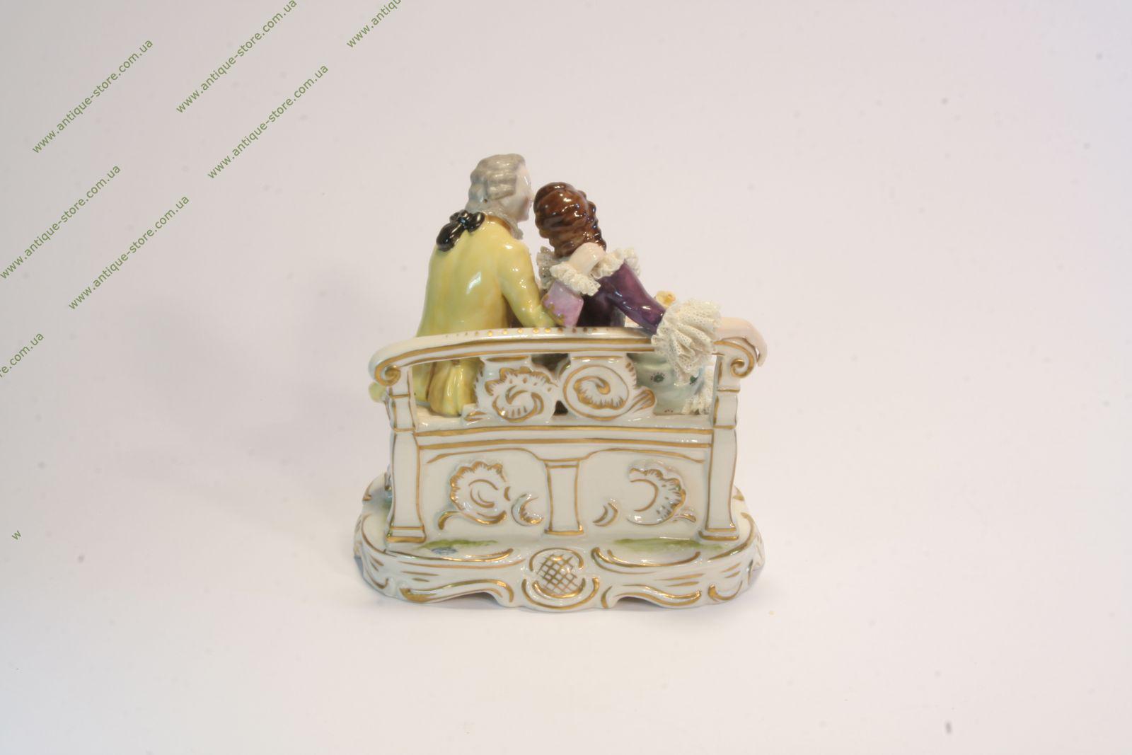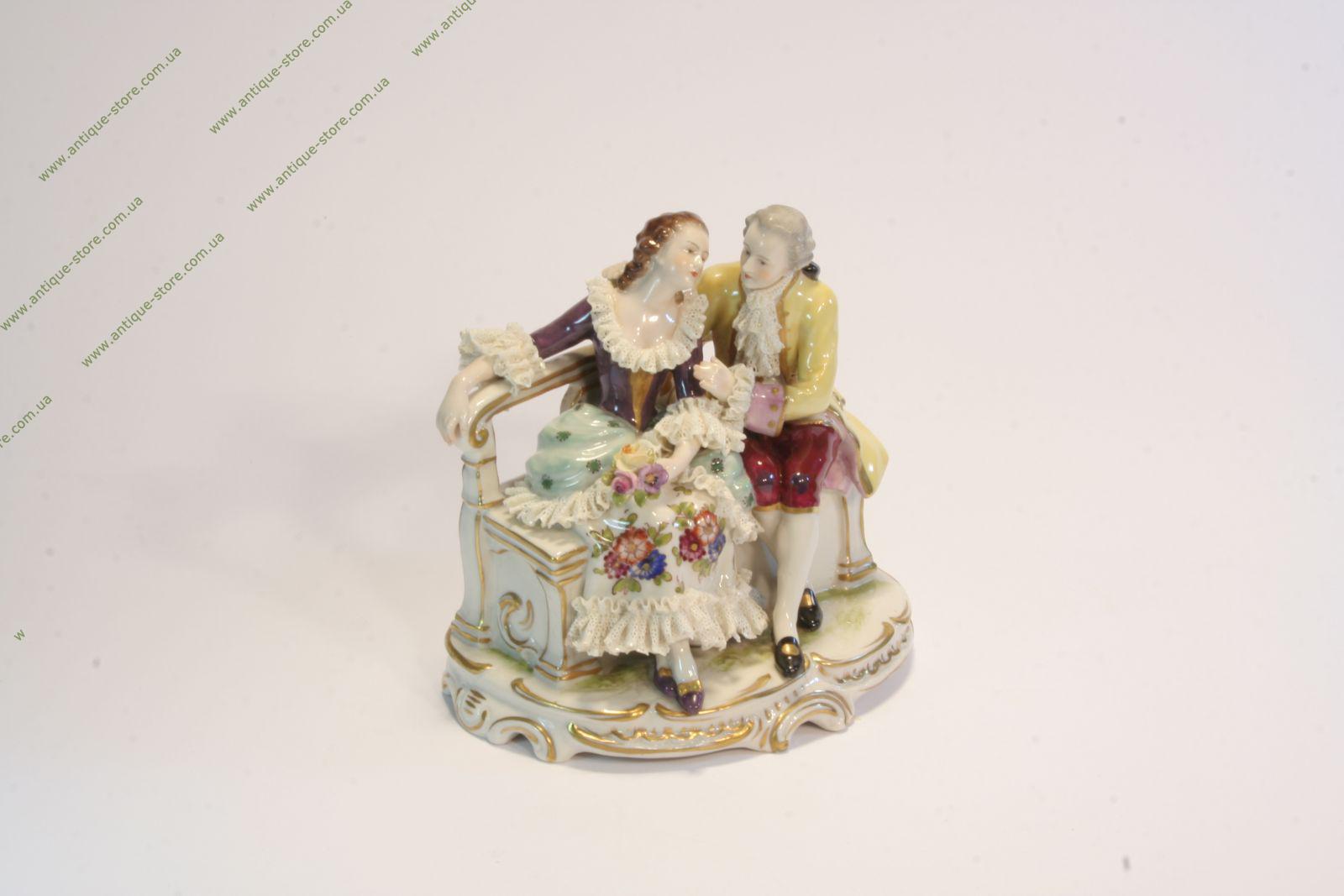 Старинный немецкий фарфор: галантная пара - кавалер и дама, любовное свидание, немецкая фарфоровая мануфактура Аэльтесте Фольксштедт (Aelteste Volkstedt).