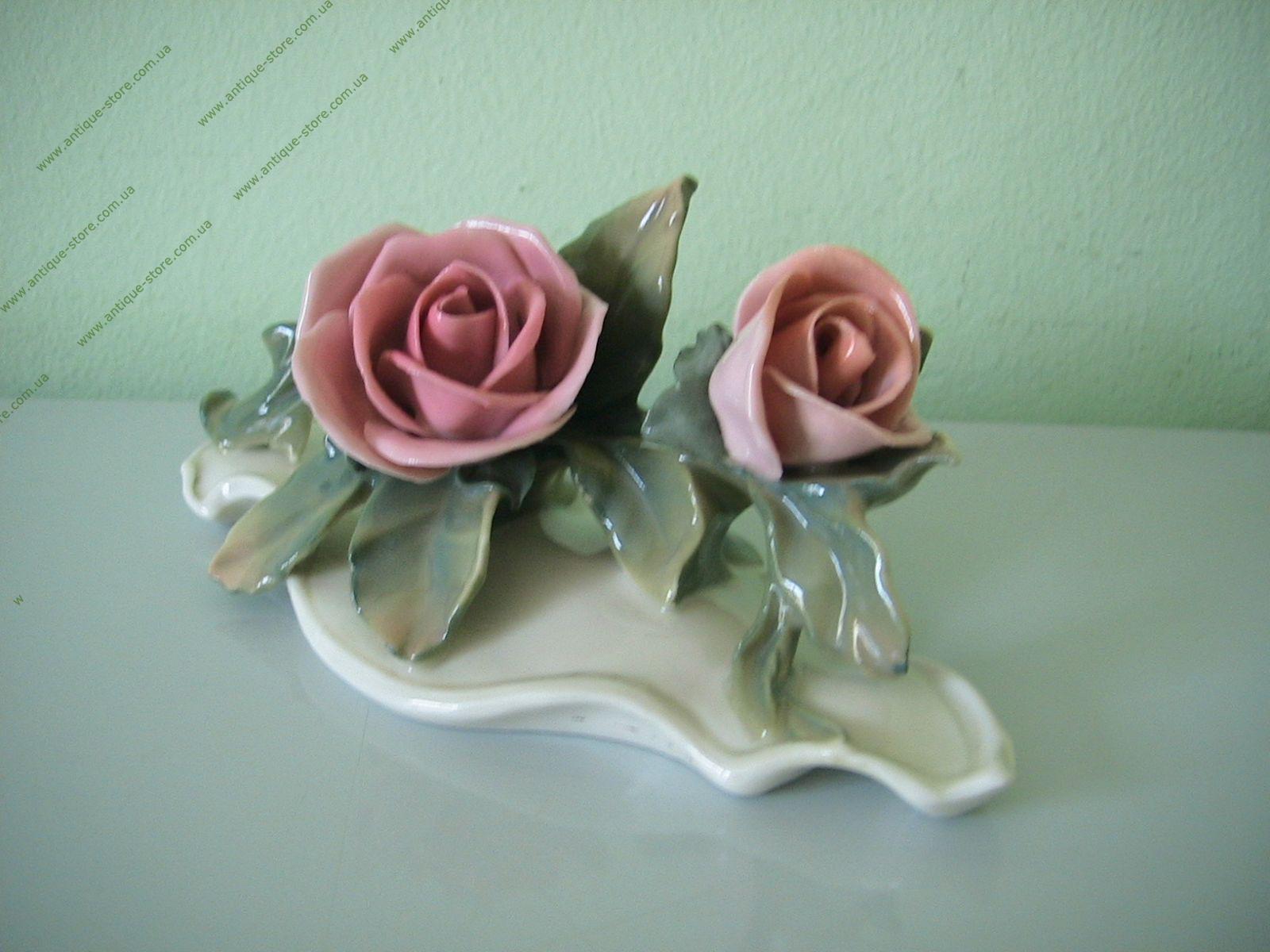 Две фарфоровые розы известной мануфактуры "Карл ЭНС" (Karl Ens) Германия. Маркировка: подглазурное зеленое клеймо "Карл ЭНС" (Karl Ens) и надпись Germany.