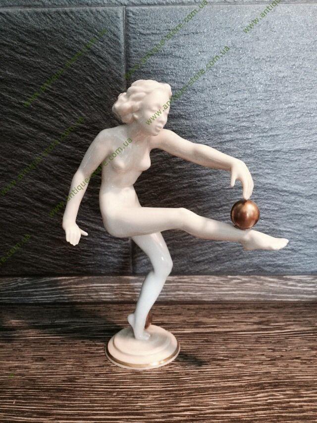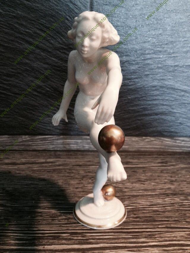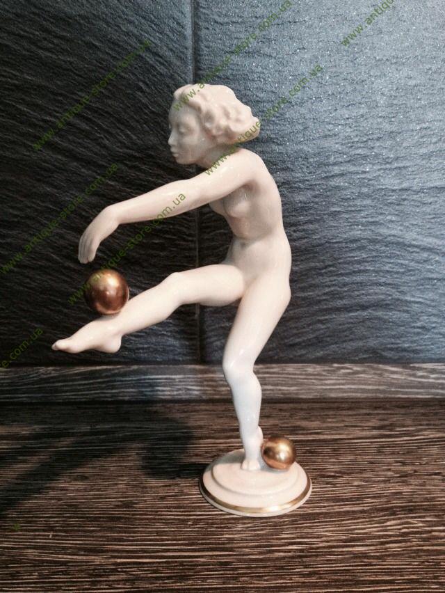 Фарфоровая фигурка обнаженной девушки, играющей с двумя мячами, с клеймом мануфактуры Хутченройтер (Hutschenreuther) на обратной стороне. Работа знаменитого художника К.Вернера (Carl Werner)