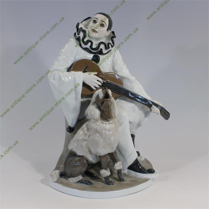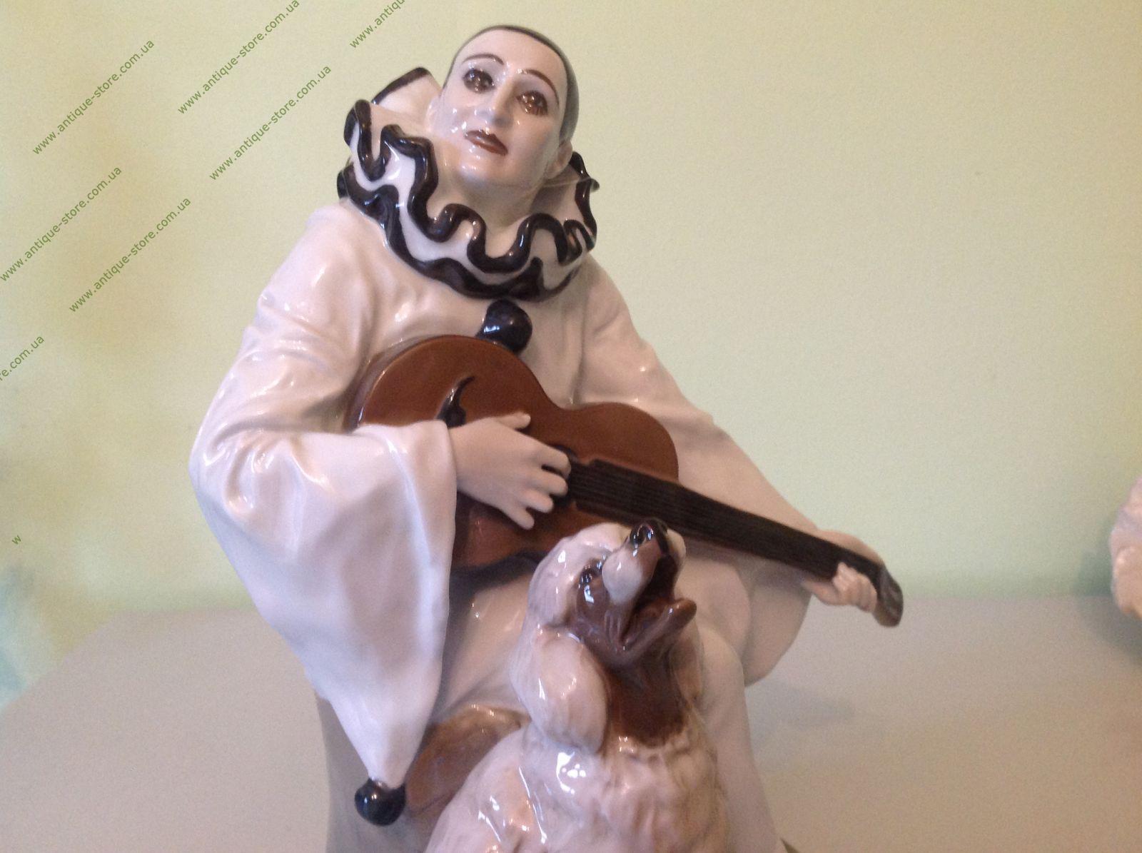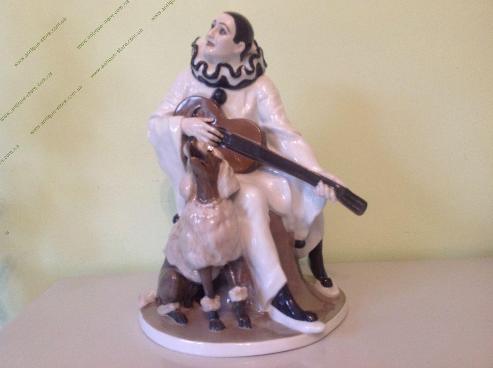Великолепный розенталевский фарфор. Статуэтка «Дуэт». Изображение Пьеро с гитарой и пуделем. Работа выполнена по эскизу знаменитого художника фабрики Розенталь (Rosenthal) Рудольф Маркус (Rudolf Marcuse), модель 1913 года. Модель номер 311. Есть подпись и клеймо.
