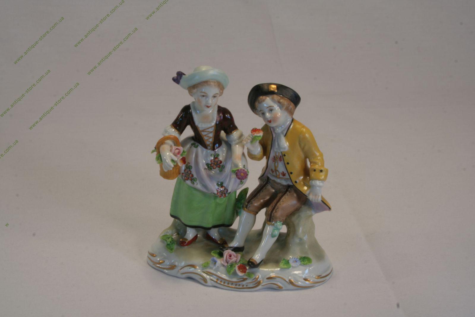 Фарфоровая фигура галантной пары детей в стиле барокко, немецкой фарфоровой мануфактуры Зитцендорф (Sitzendorf).